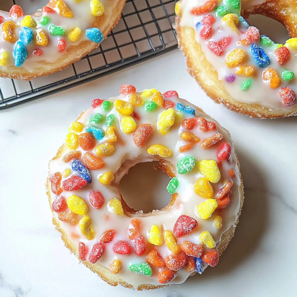 Fluffy Fruity Pebbles Donuts for a Nostalgic Treat