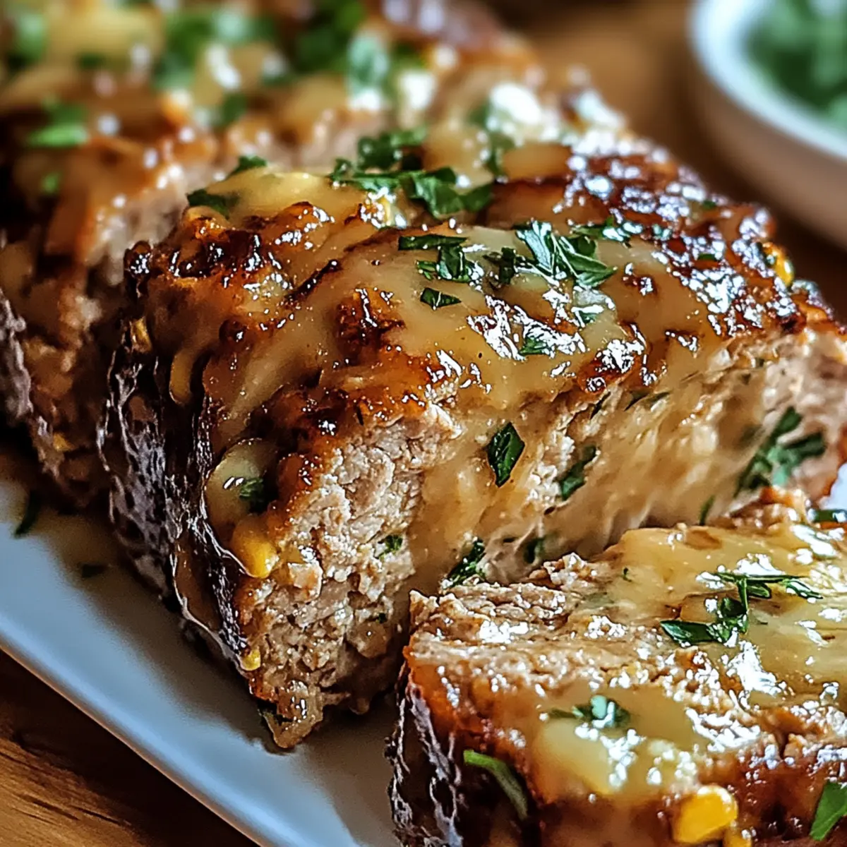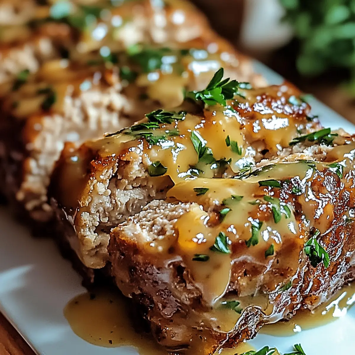 While the meatloaf is baking, melt unsalted butter in a small saucepan over medium heat. Add minced garlic and sauté for about 1 minute until fragrant. Stir in the additional Parmesan and chopped parsley, allowing the mixture to thicken slightly. This delicious glaze will enhance the flavor and create a beautiful finish for your Garlic Parmesan Chicken Meatloaf.