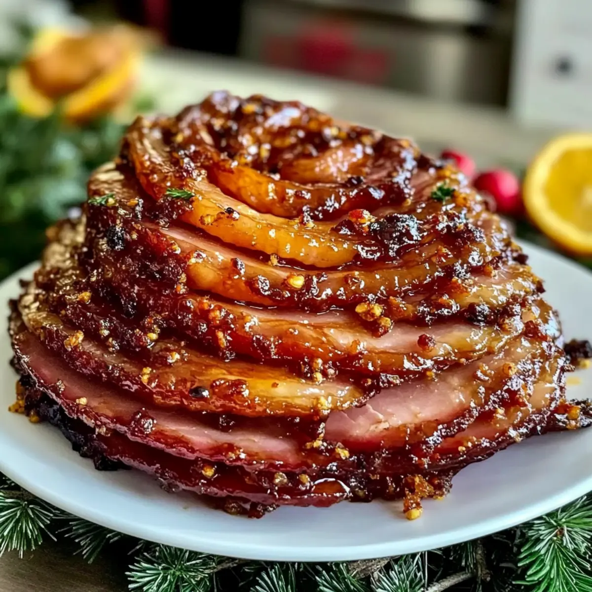 Savory Garlic: Brush the ham with garlic-infused oil before glazing for a robust flavor. The savory garlic pairs well with the sweetness of the brown sugar.