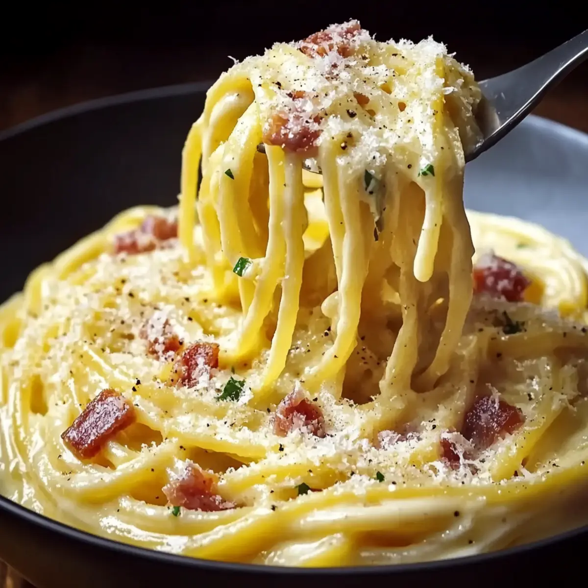 Truffle Infusion: Drizzle a bit of truffle oil just before serving to elevate your Carbonara to gourmet status. This luxurious addition brings an irresistible aroma and flavor that’s sure to impress!