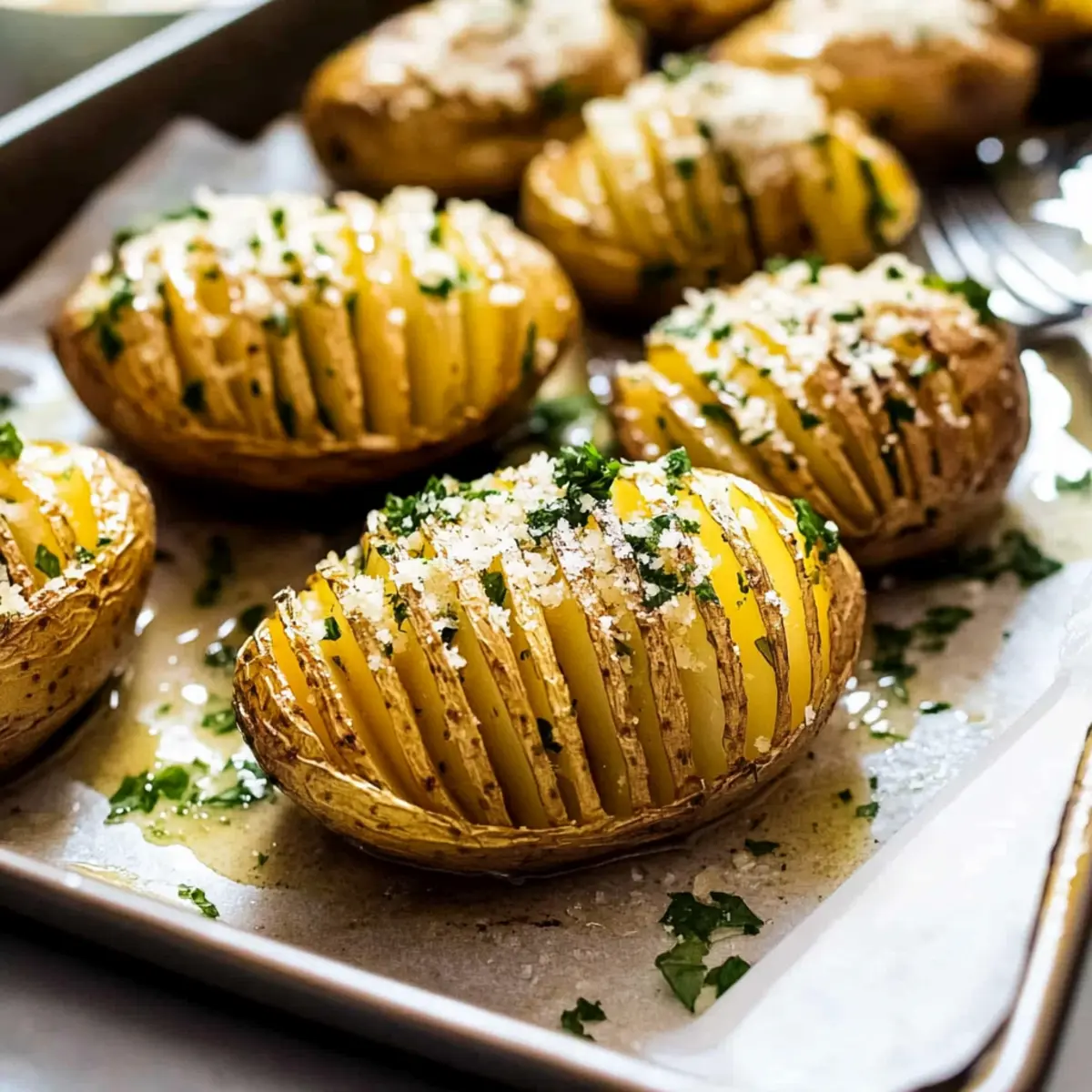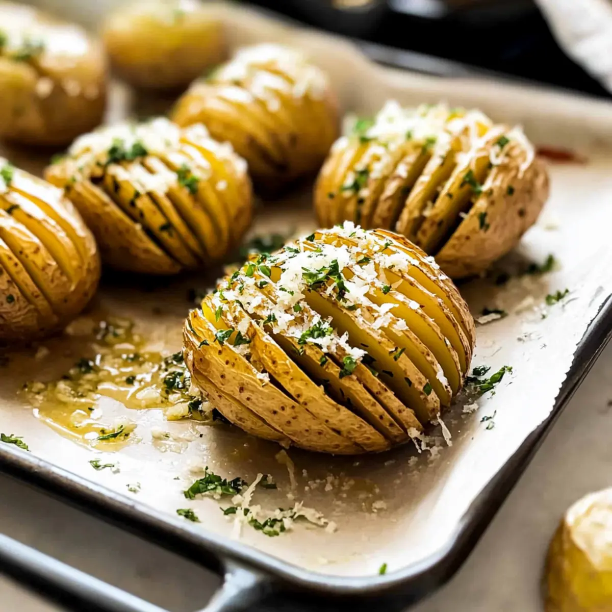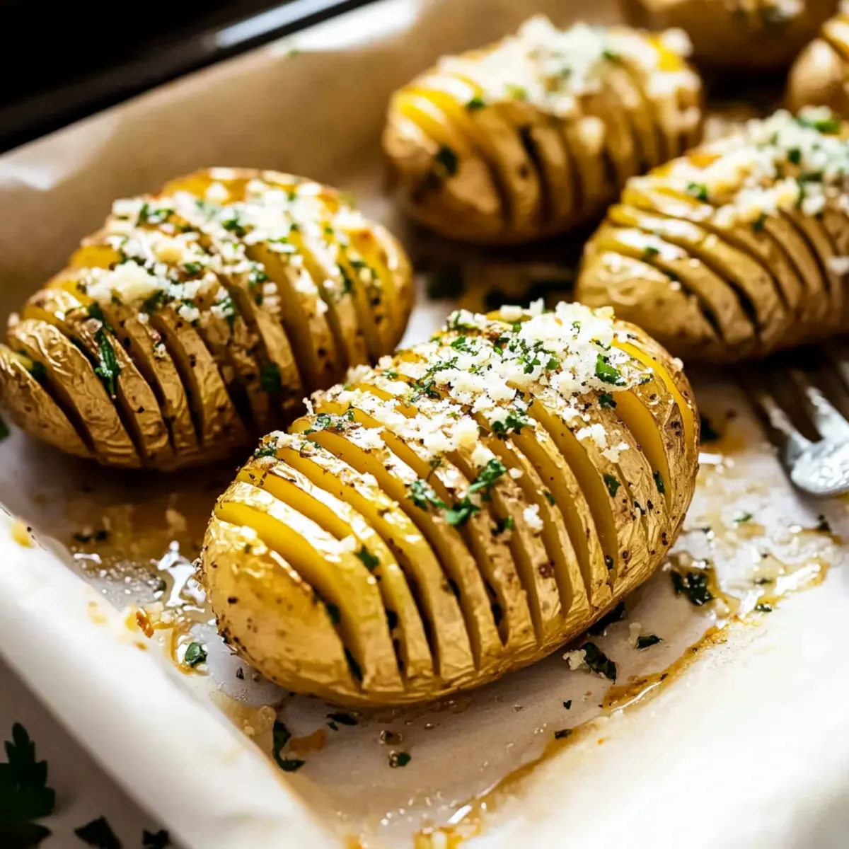 Once your Hasselback potatoes are beautifully golden and fragrant, take them out of the oven. Brush with any remaining garlic butter for an extra richness and garnish with freshly chopped parsley for a pop of color. Serve immediately for a delightful side dish that will impress your family and friends!