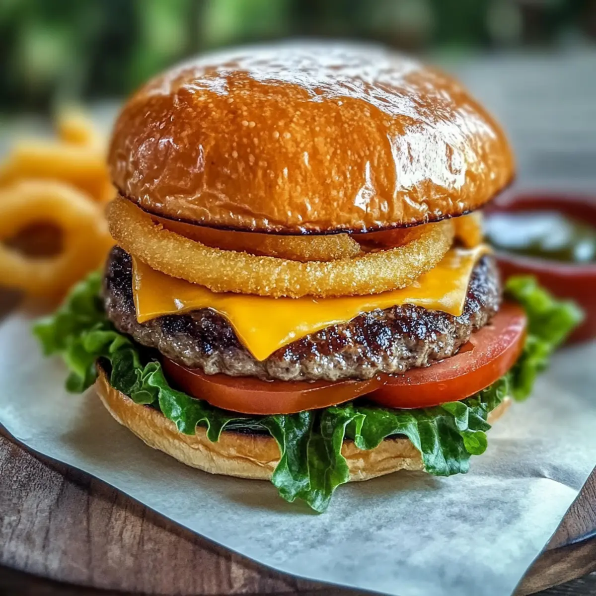 Golden and crispy, onion rings offer a satisfying bite and perfectly complement the flavor of juicy homemade burgers. -