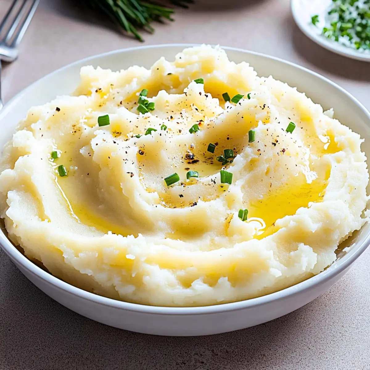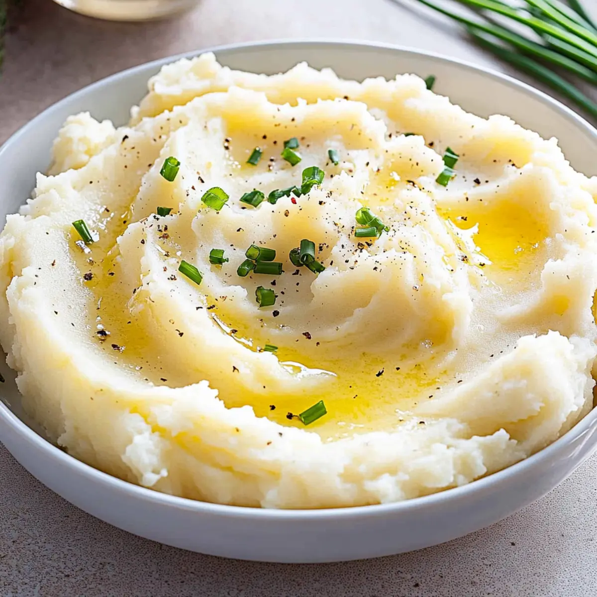 Transfer the creamy mashed potatoes to an oven-safe dish. Cover loosely with foil and place in a preheated oven at 200°F to keep warm while you finish preparing your meal. Just before serving, sprinkle fresh chives over the top for a burst of color and flavor, ready to complement your favorite holiday dish.