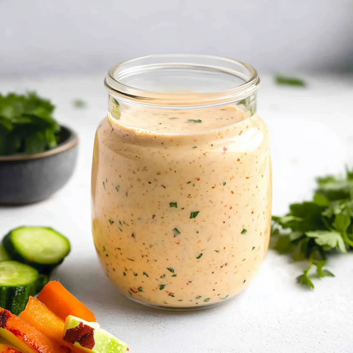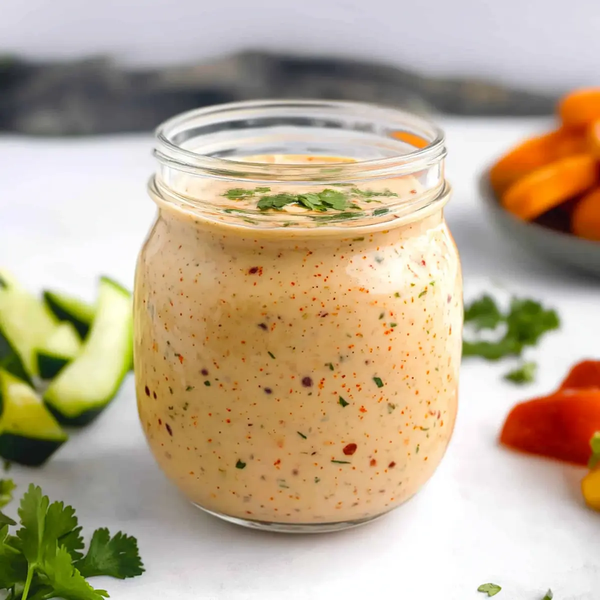 You can store your Hot Honey Ranch dressing in an airtight container in the refrigerator for up to 7-10 days. Make sure the lid is sealed tightly; this helps maintain the creamy texture and flavor. Before each use, give it a good shake or stir to reintegrate any ingredients that may have settled.