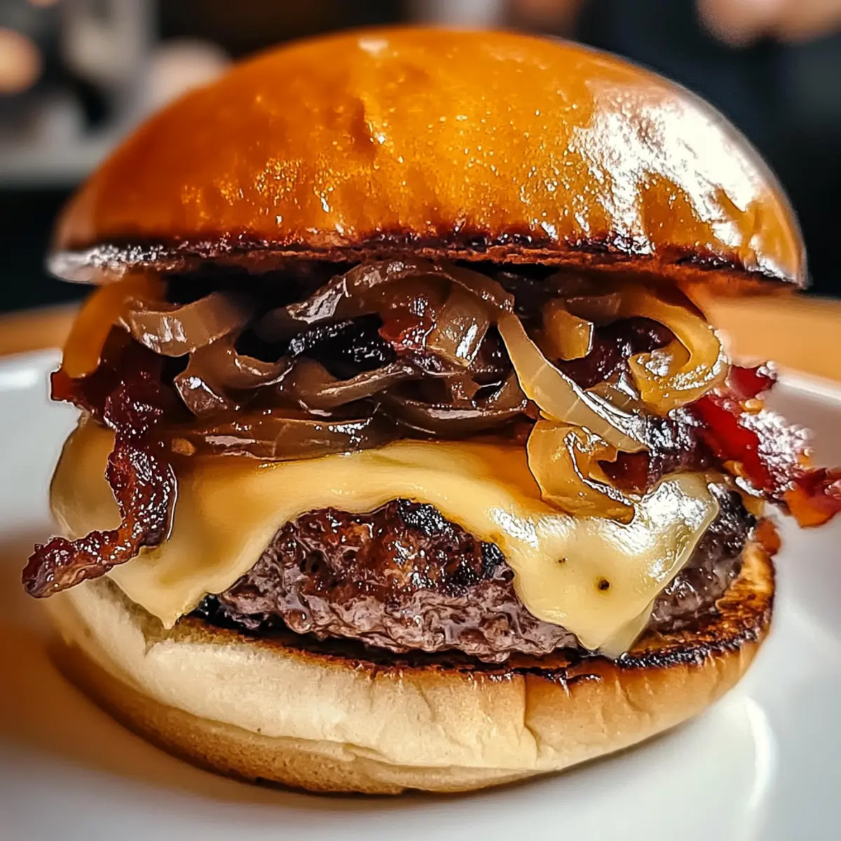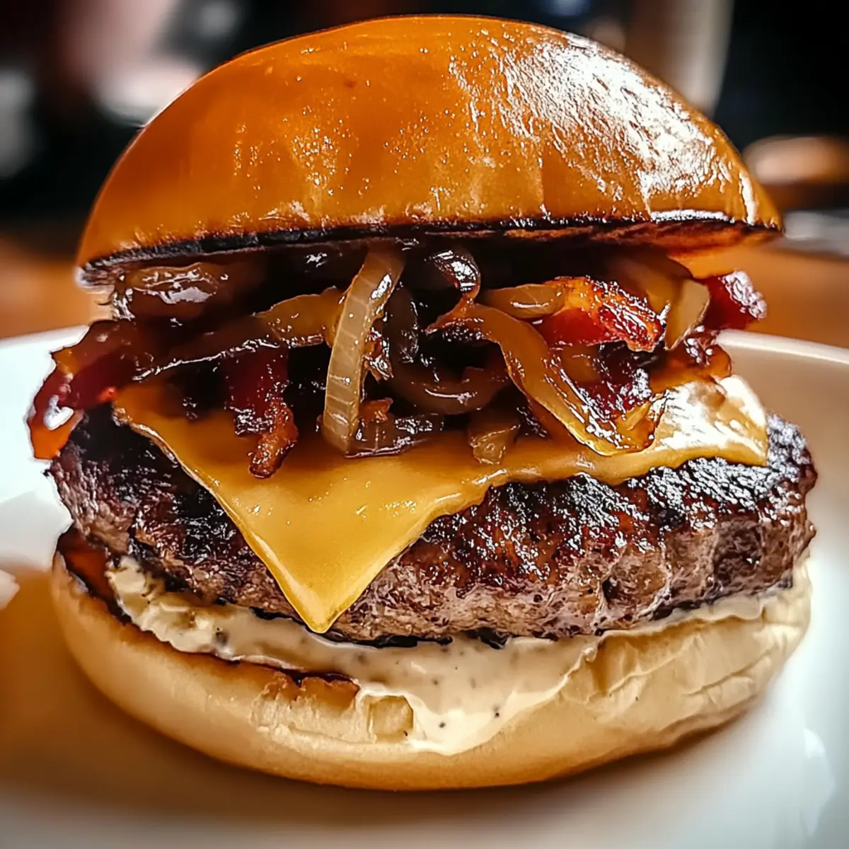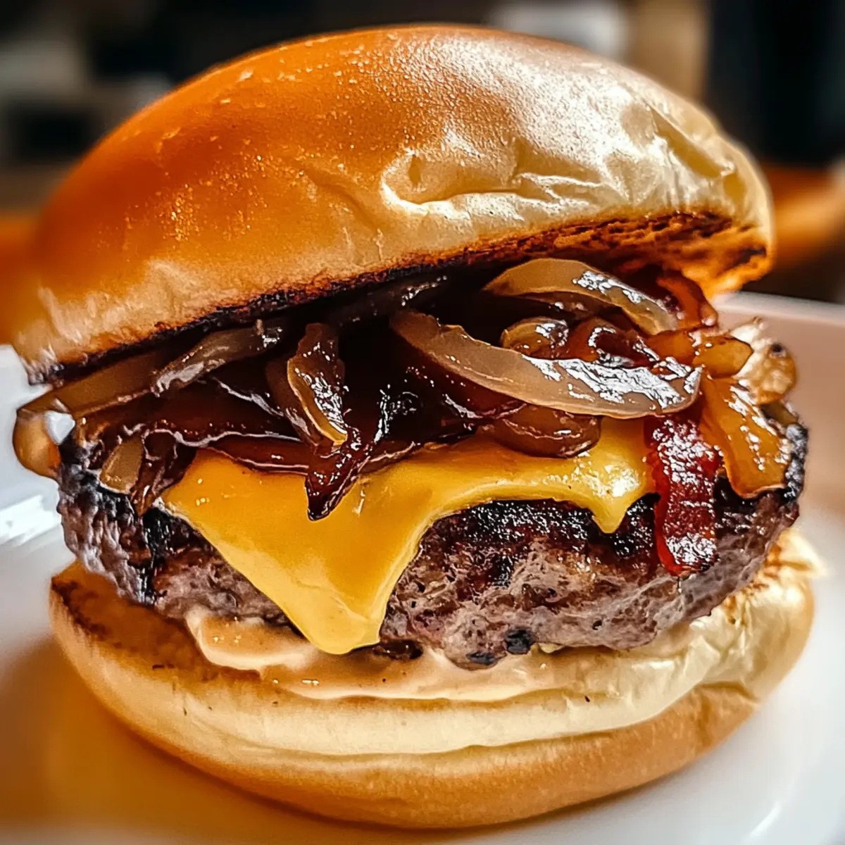Savory Irish Pub Burger with Guinness-Caramelized Onions