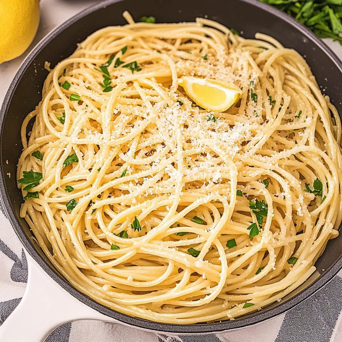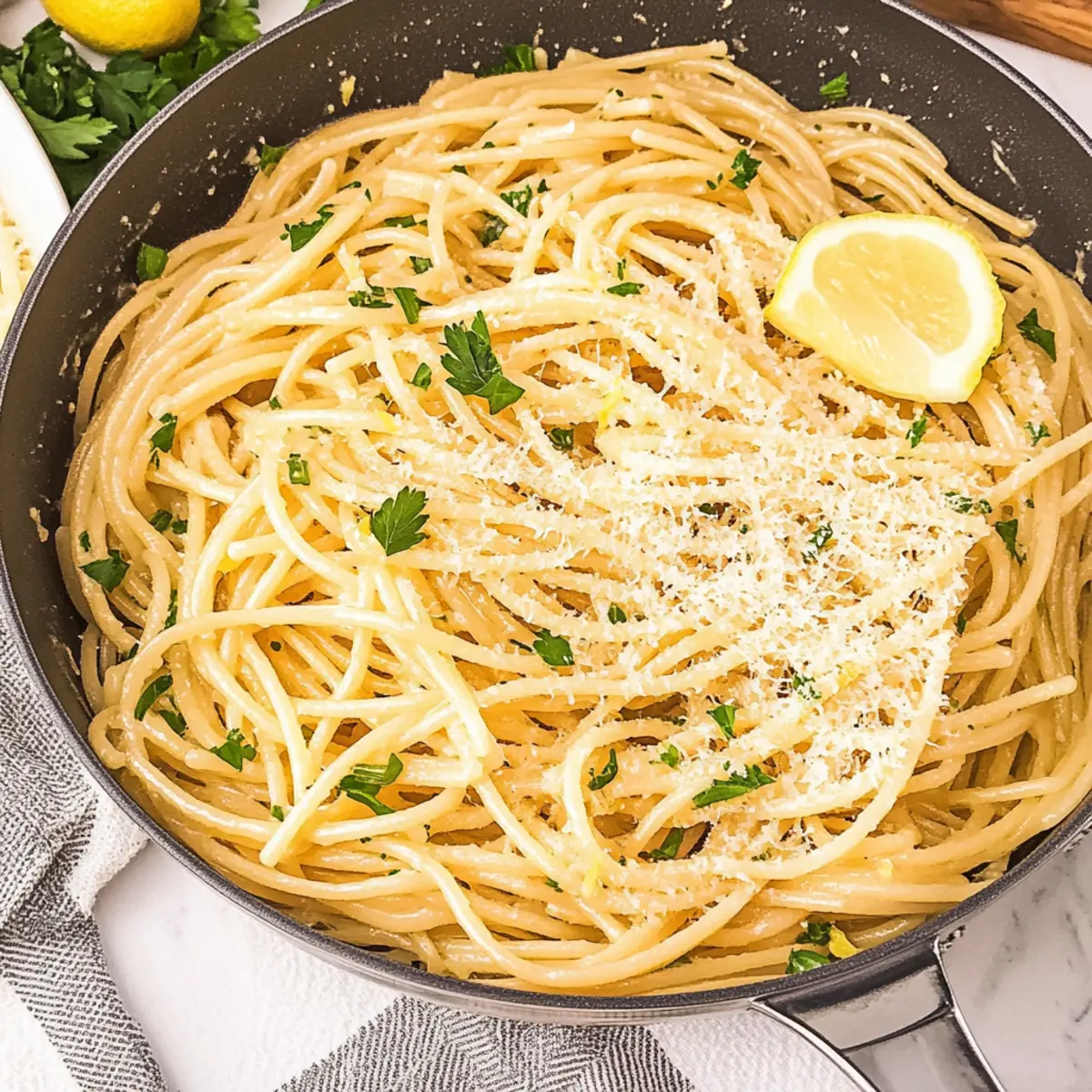 - Serve your Lemon Garlic Parmesan Pasta immediately on warm plates, garnishing generously with chopped flat-leaf Italian parsley.
