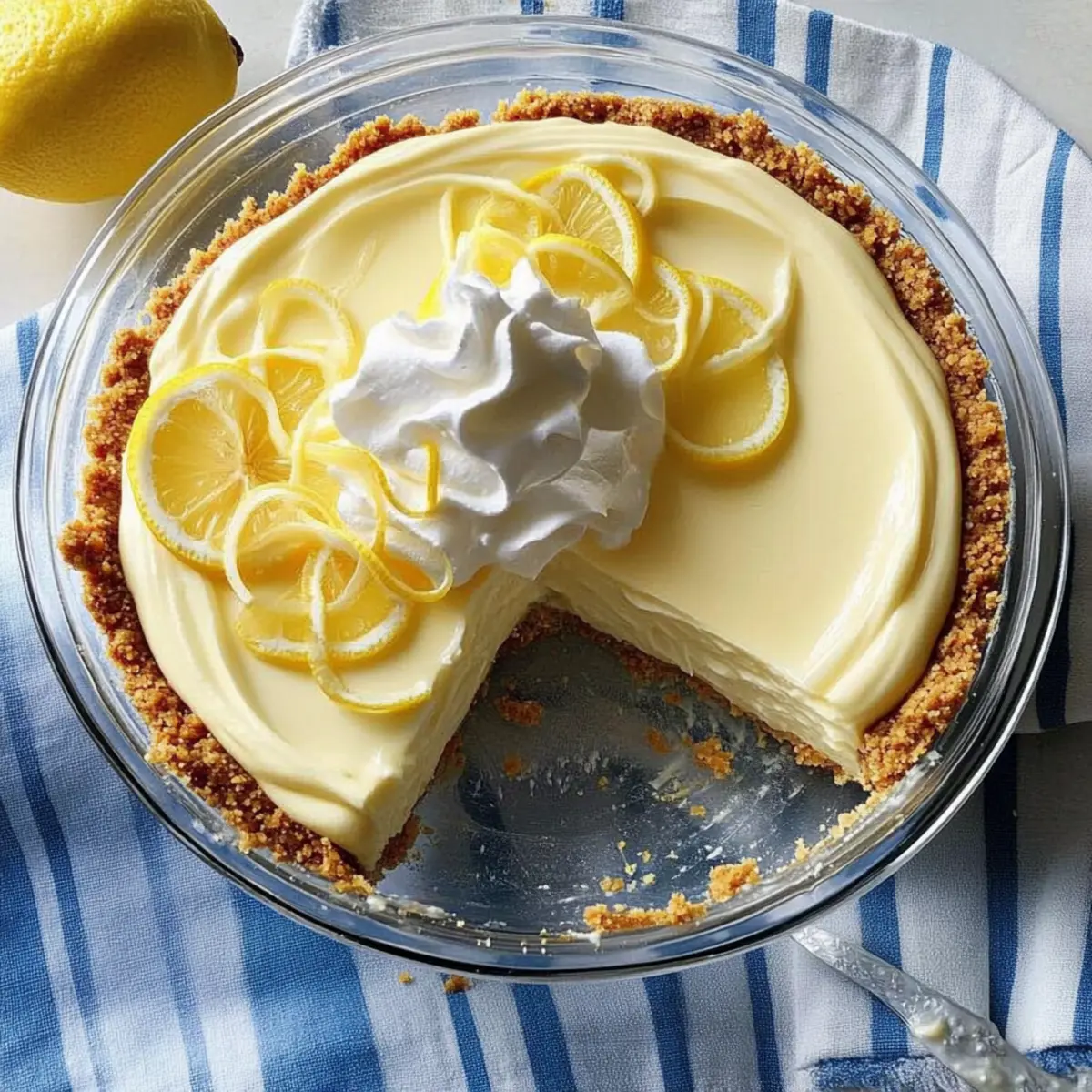 Take your prepared graham cracker crust and pour the luscious filling into it, smoothing the top with a spatula for an even finish. Make sure to fill the crust completely to the edge, allowing it to hold in all that delightful lemon flavor. The pie will look enticing and ready for the fridge.