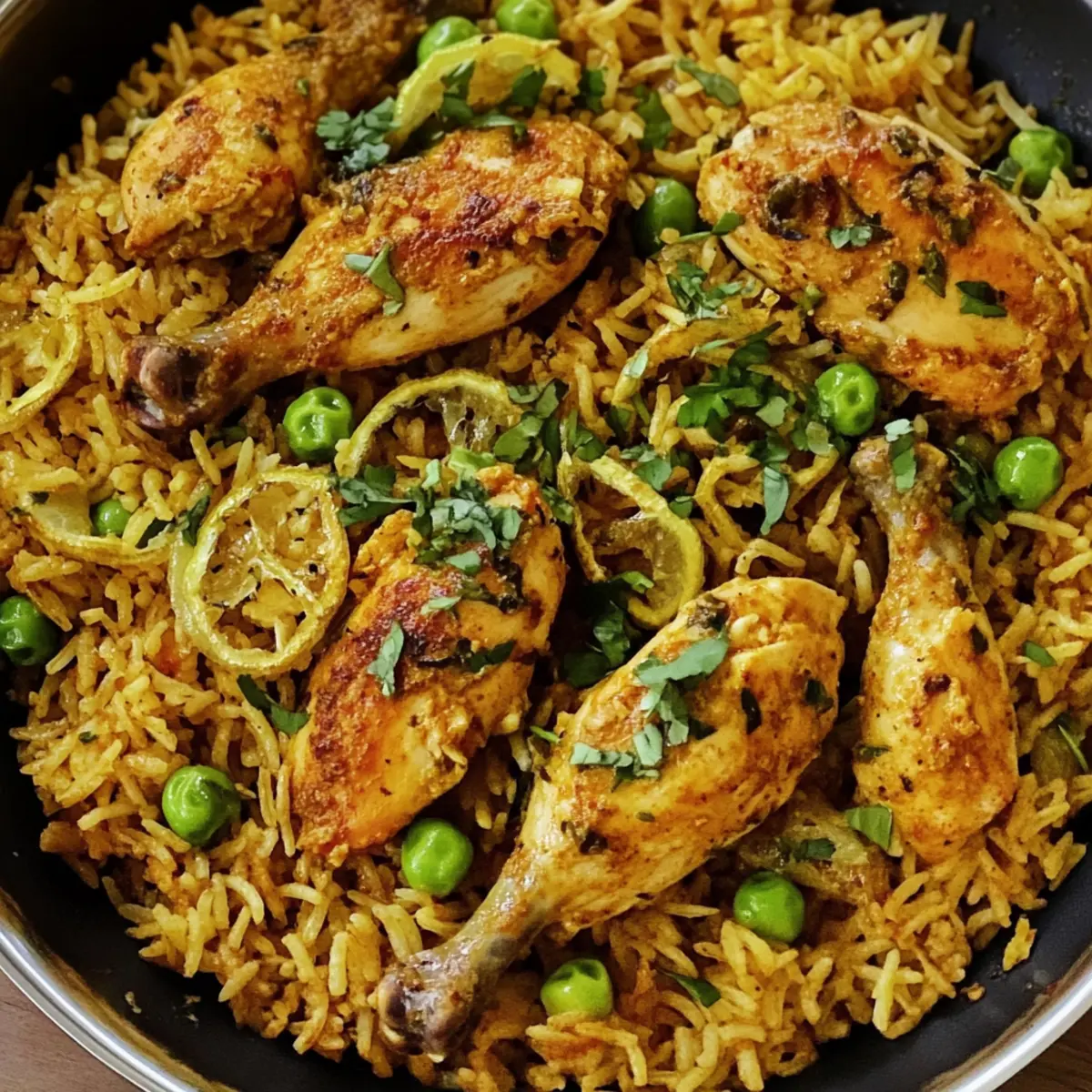Once boiling, reduce the heat to low and add 1 cup of frozen peas, along with the seared chicken back into the pan. Cover tightly with a lid and let it simmer for 15-20 minutes until the rice has absorbed liquid and is tender. You’ll know it’s ready when fragrant steam escapes upon lifting the lid.