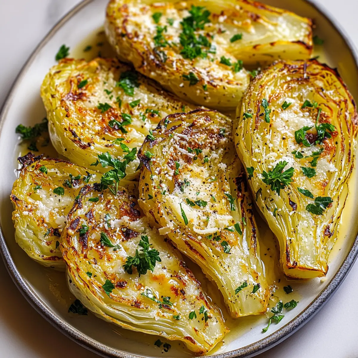 Once your melted cabbage is done roasting, carefully remove it from the oven. Garnish with freshly chopped parsley for color and a burst of freshness. Serve your delightful Garlic Parmesan Melted Cabbage warm, and watch as it transforms your meal into something truly special.