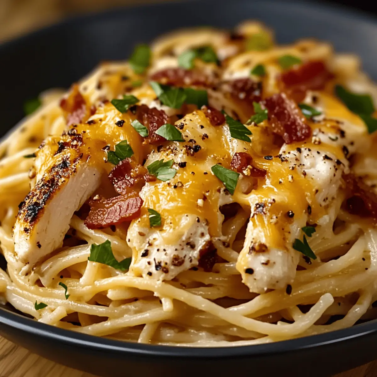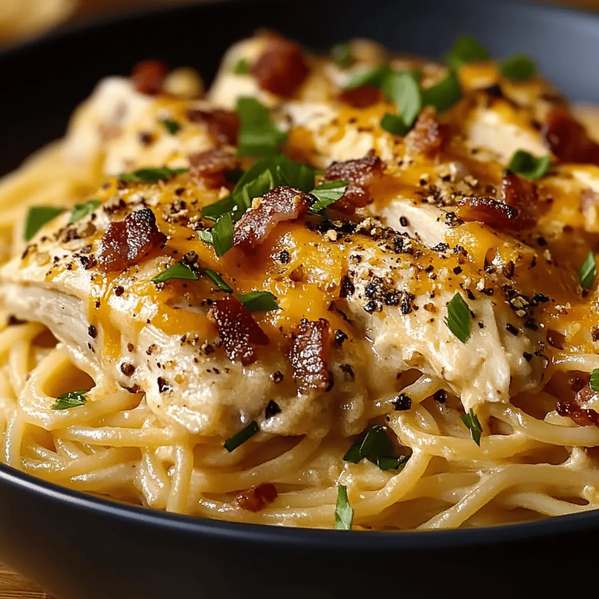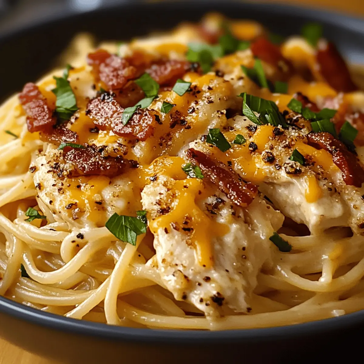 Comforting, Cozy Dish: This meal is the epitome of comfort food! Imagine tender chicken and crispy bacon wrapped in a creamy, dreamy sauce harmoniously coating spaghetti.