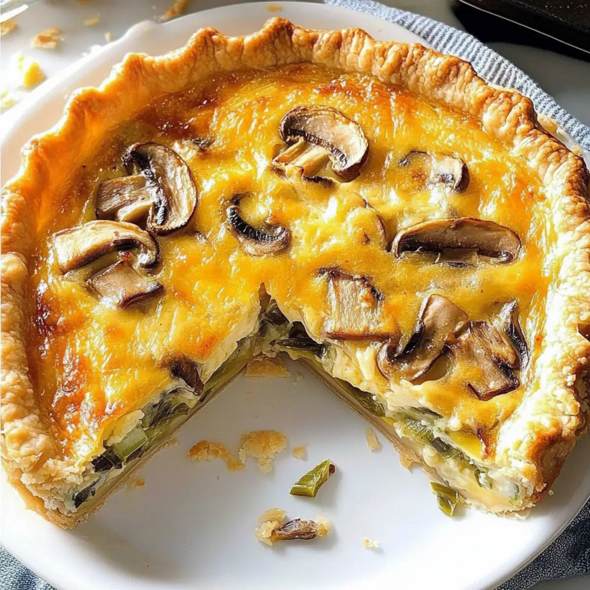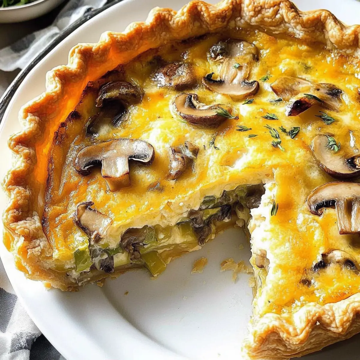 Cheese Swap: Opt for goat cheese or feta instead of cheddar for a tangy twist. The creamy texture will complement the mushrooms and leeks perfectly, taking your pie to the next level.