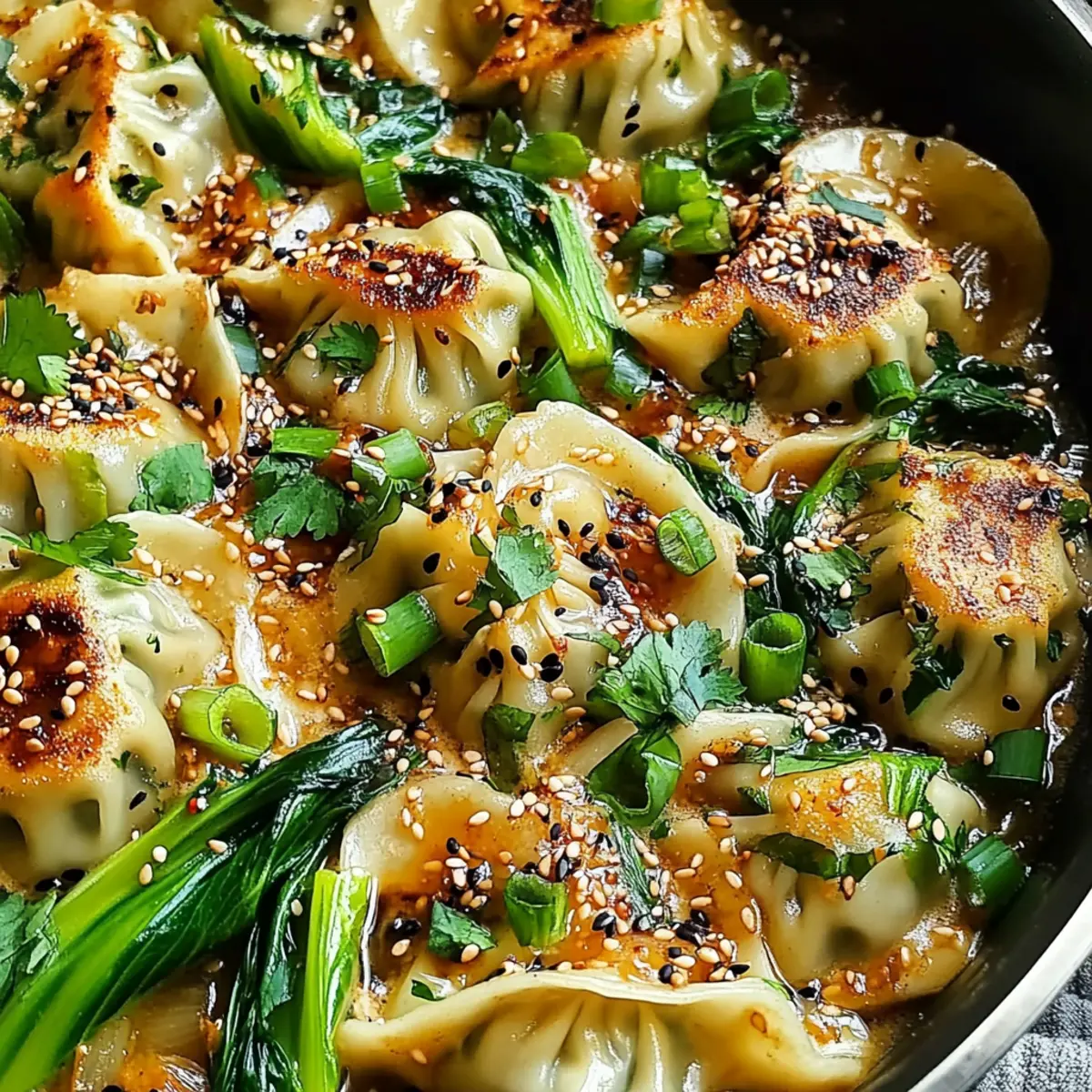 These One Pan Dumpling Dinner preparations are perfect for meal prep enthusiasts! You can mix the sauce (garlic, ginger, soy sauce, and coconut milk) up to 24 hours in advance and store it in the refrigerator; this allows the flavors to meld beautifully. Additionally, you can sauté the bok choy and keep it in an airtight container for up to 3 days, just ensure to cool it completely before sealing to maintain its crispness. When you’re ready to enjoy, simply reheate the bok choy, layer the frozen dumplings on top, pour the prepared sauce over them, and simmer until cooked through. This method will save you time on busy nights while ensuring your One Pan Dumpling Dinner remains just as delicious and satisfying!