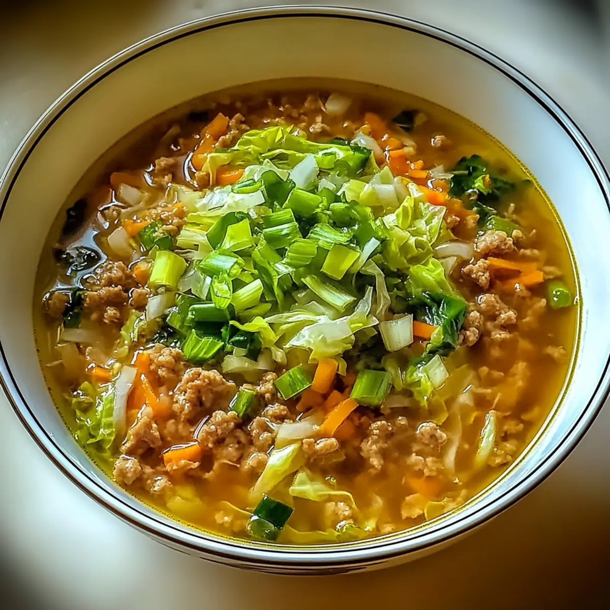 The comforting aroma of simmering broth fills the air, reminiscent of bustling Asian markets where street food delights abound. With just one pot and about 30 minutes, you can whip up a delicious bowl of One-Pot Egg Roll Soup with Green Onions and Ginger. This low-carb, keto-friendly dish brings the familiar flavors of your favorite egg rolls into a warm, satisfying soup that’ll warm your heart on a chilly evening. Featuring tender ground pork, fresh cabbage, and a medley of aromatic spices, it’s a quick and easy way to satisfy your cravings without the guilt of takeout. Ready to take your dinner to the next level? Let’s dive into this bowl of cozy goodness!