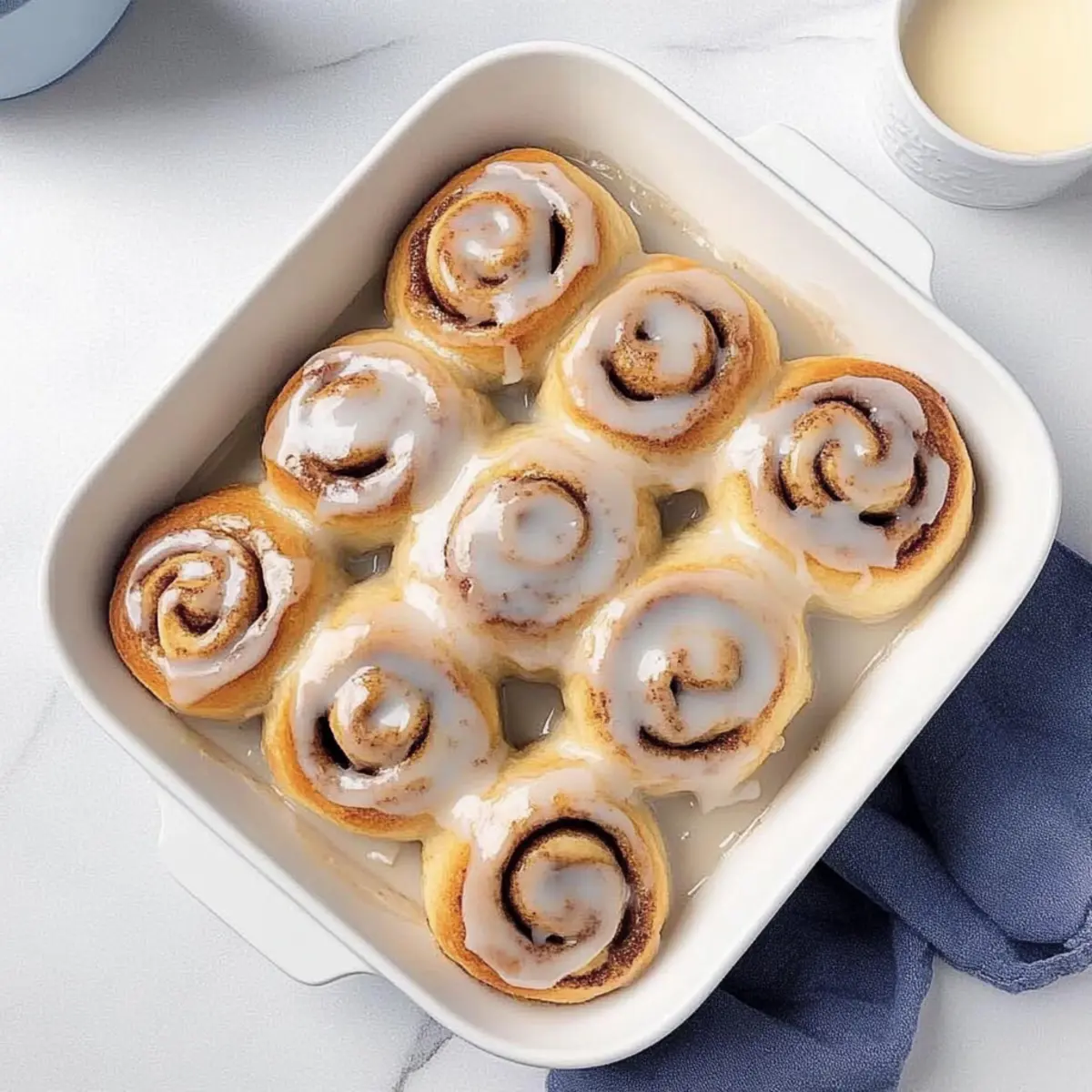 While the rolls are cooling slightly, whisk together 1 cup of confectioners’ sugar, 2 tablespoons of half-and-half, and 1 teaspoon of vanilla extract in a bowl until smooth. Once the rolls are warm (but not scalding), generously drizzle the glaze over the top. These delightful touches will elevate your Overnight Cinnamon Rolls to the ultimate breakfast treat!