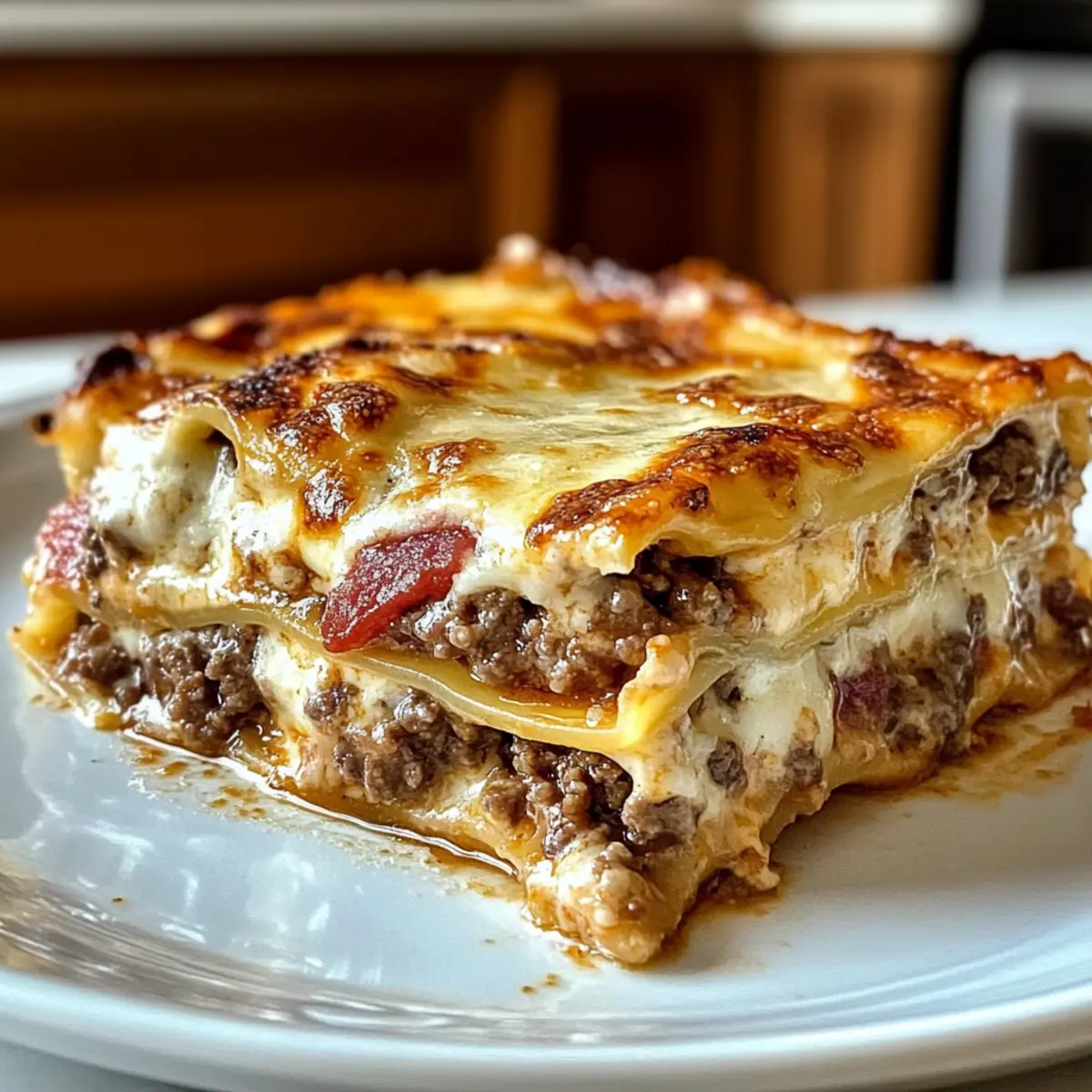 Irresistible Parmesan Garlic Bacon Cheeseburger Lasagna Delight