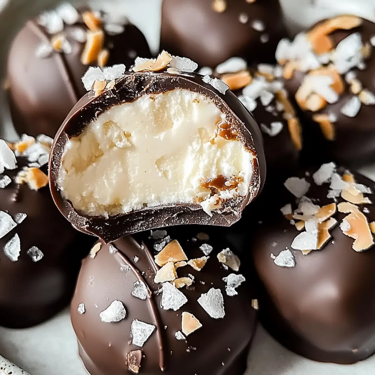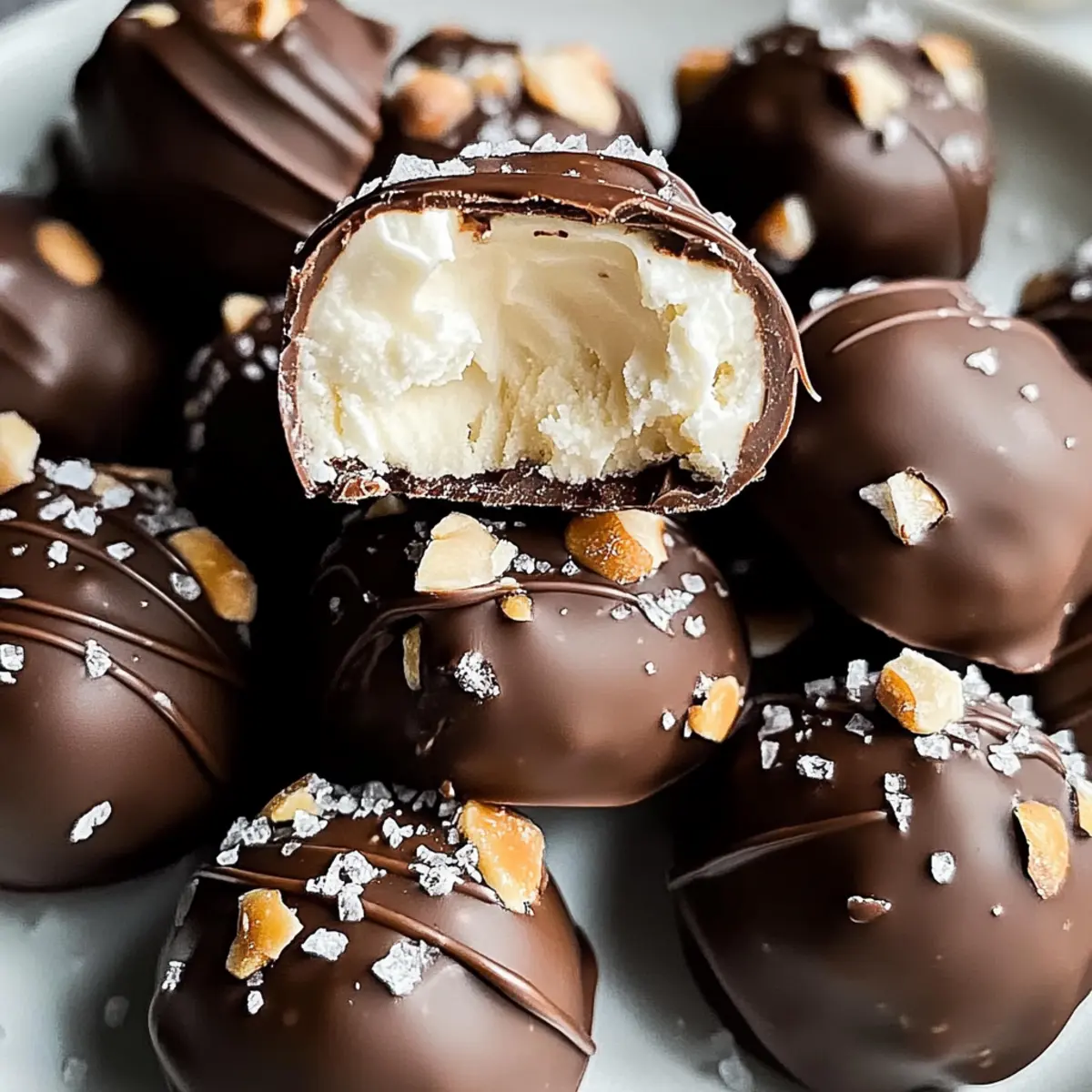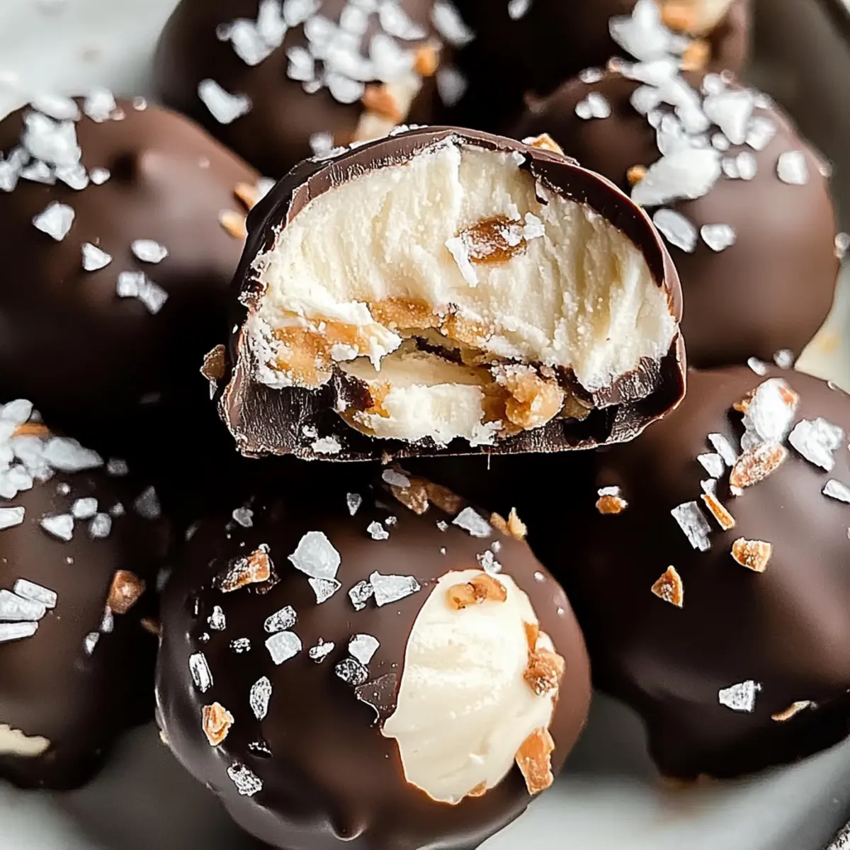 - Return coated bites to the freezer and let harden for another 30 minutes. Optionally sprinkle with flaky sea salt before freezing.
