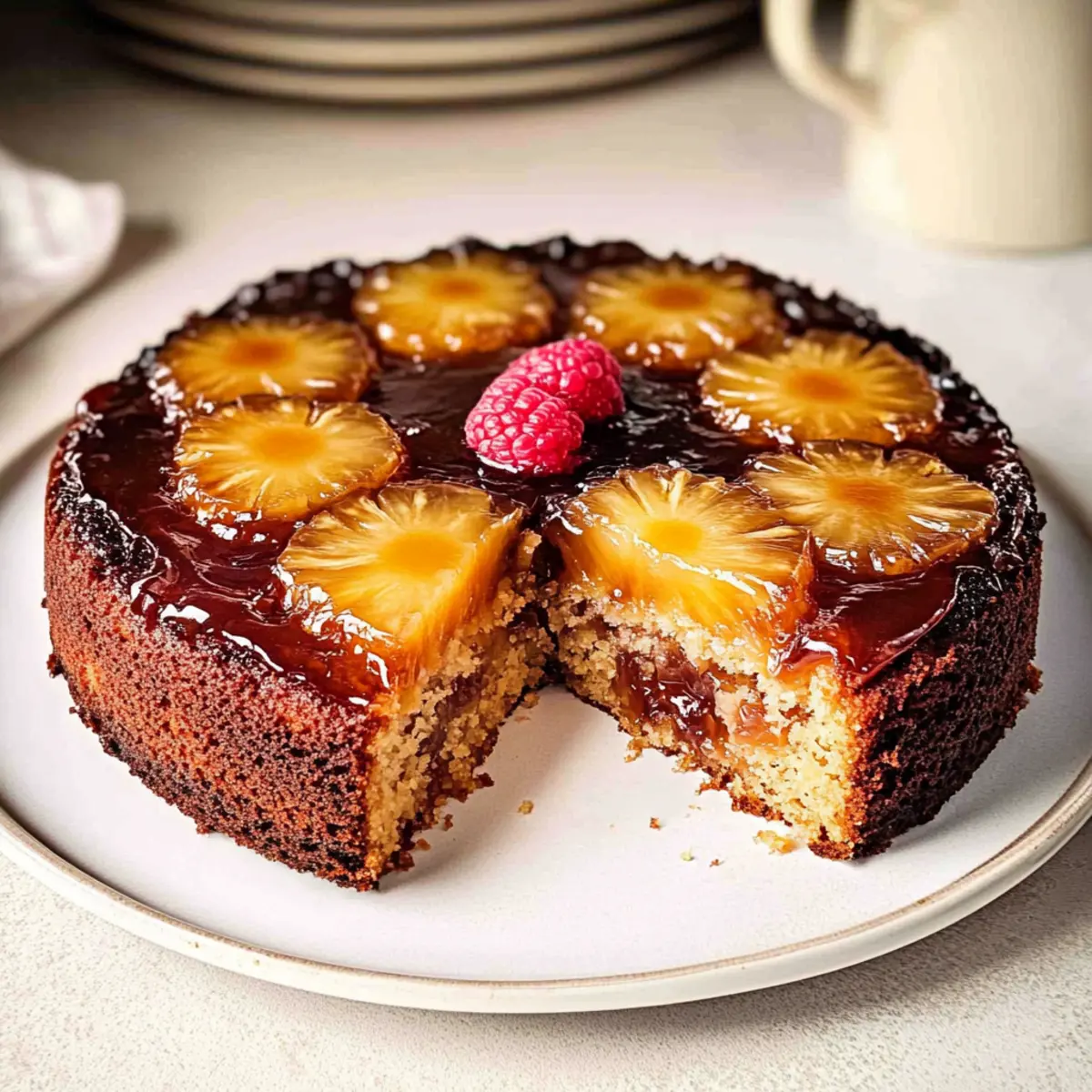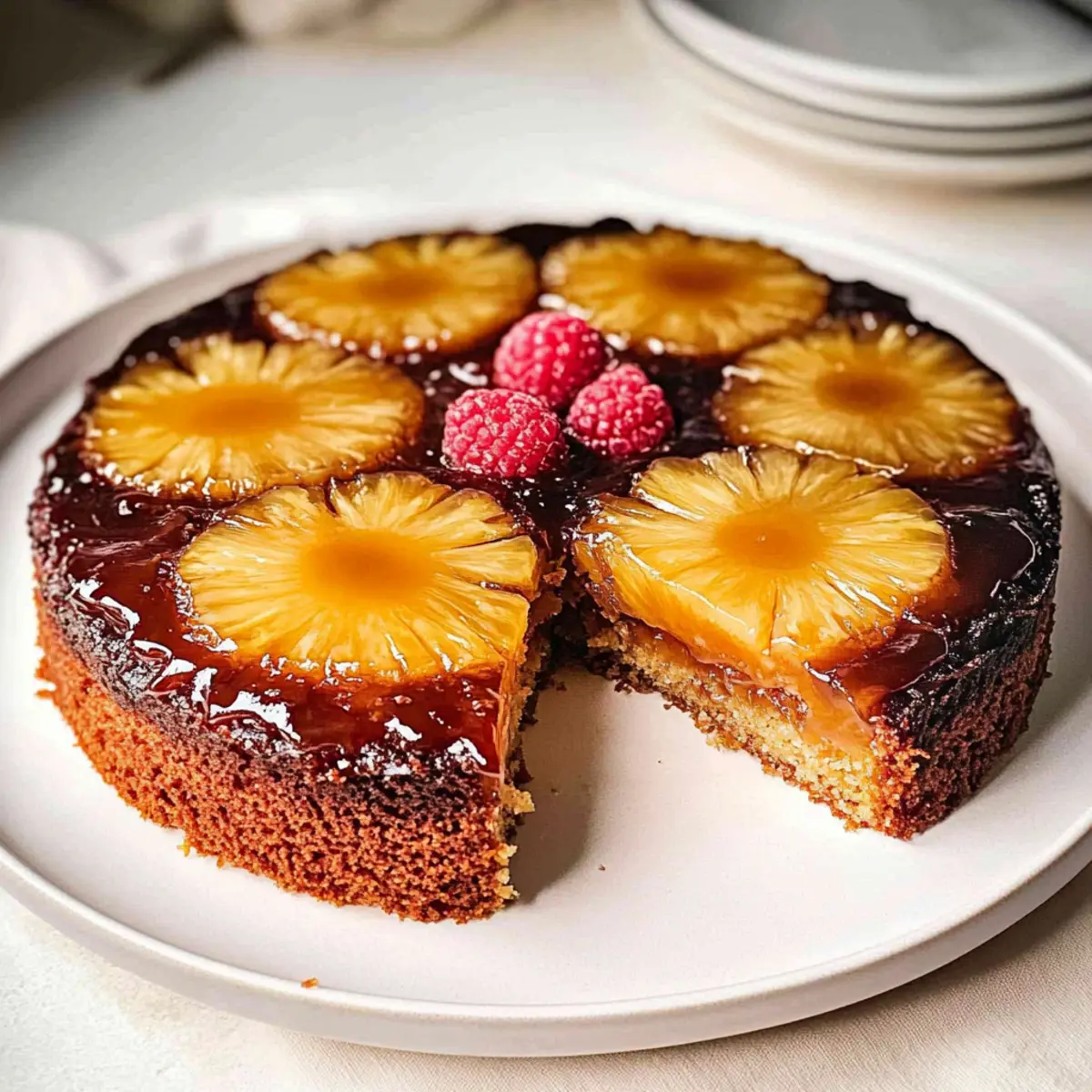 Finish off your Pineapple Upside Down Cake by adding fresh raspberries for a pop of color if desired. The vibrant berries not only enhance the presentation but also provide a refreshing balance to the cake’s sweetness. Slice it up and serve while it’s still warm or at room temperature for an unforgettable treat.