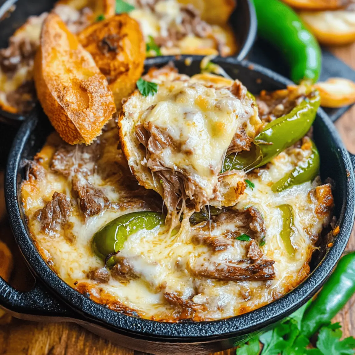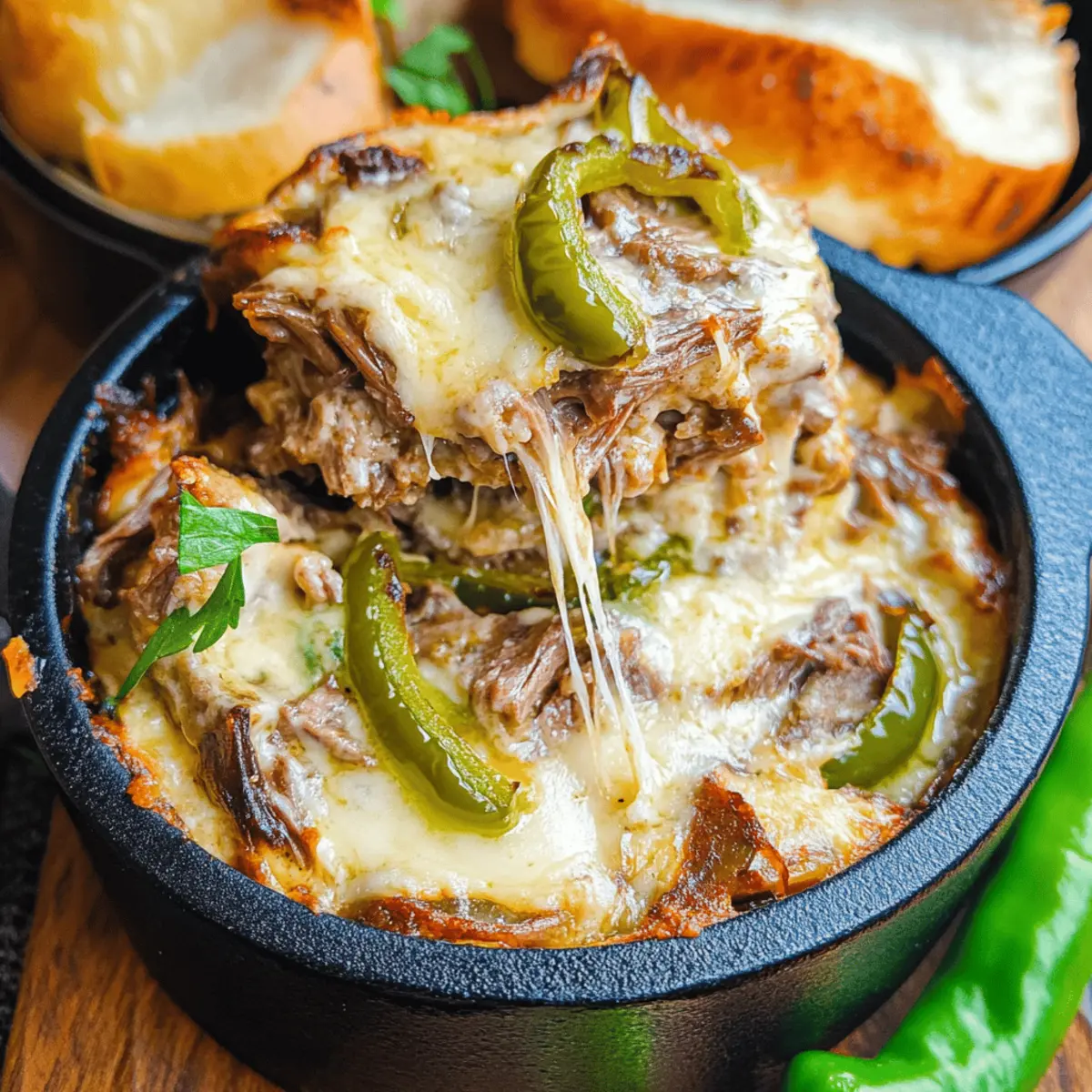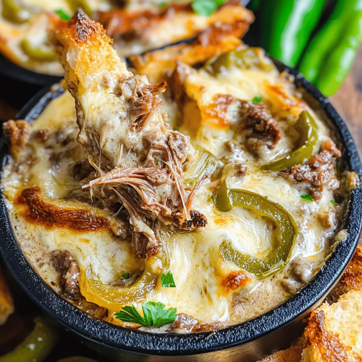 These Pot Roast Beef Philly Cheese Steak Dip preparations are perfect for busy cooks looking to save time! You can combine all of the ingredients in advance, storing the prepared mixture in an airtight container in the refrigerator for up to 24 hours. This ensures every flavor melds beautifully while keeping the dip just as delicious. When you’re ready to serve, simply pour the mixture into a greased baking dish and bake at 350°F (180°C) for 15-30 minutes, or until bubbling and golden brown. For even more ease, consider reheating it in a slow cooker on low for about an hour before your event, keeping it warm and inviting for all your guests!