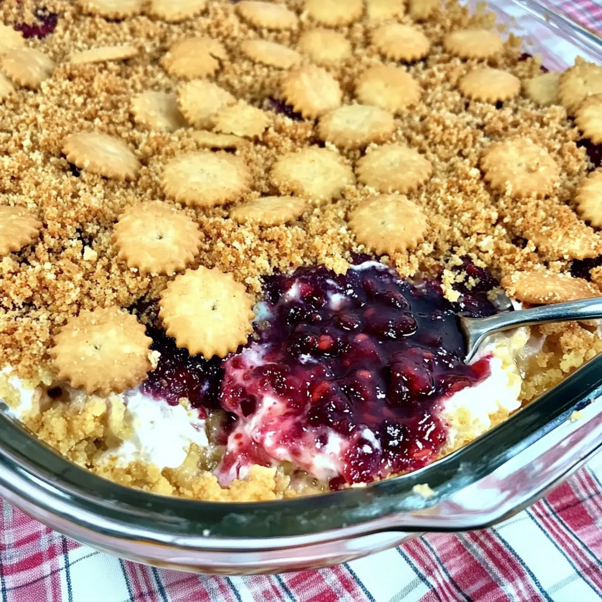 - Sprinkle the buttery cracker mixture over the raspberry layer, then bake for 25–30 minutes.