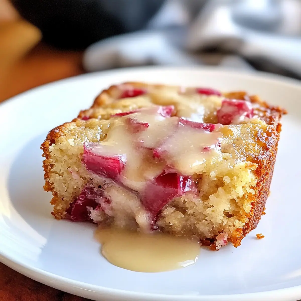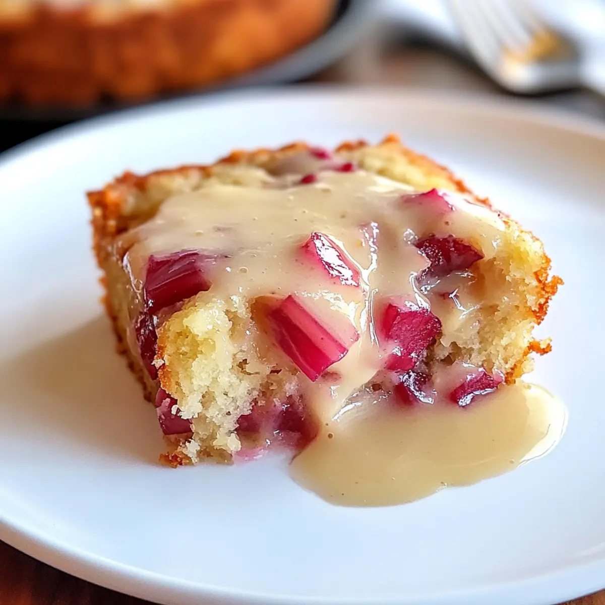 Irresistibly Moist Rhubarb Cake with Butter Sauce Delight