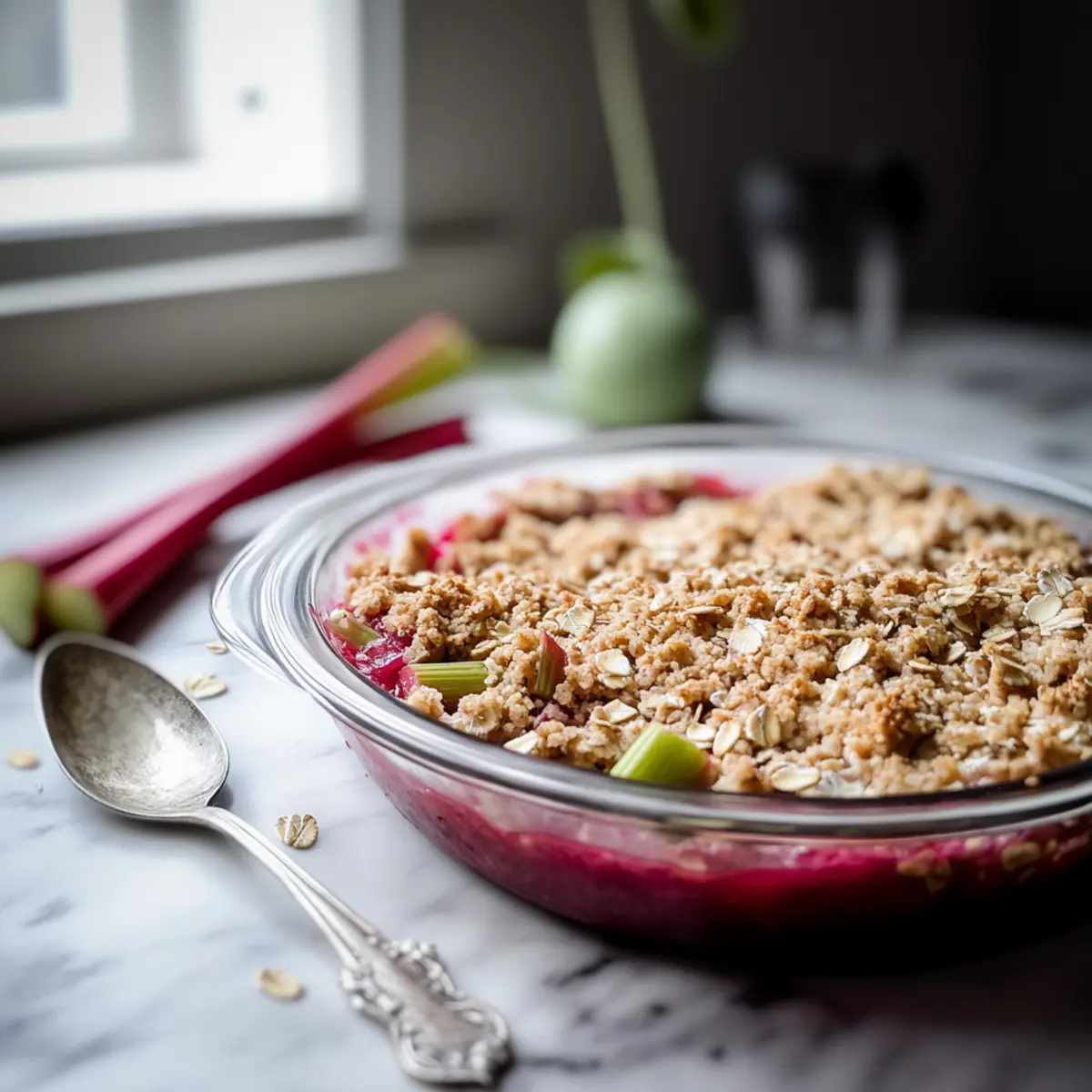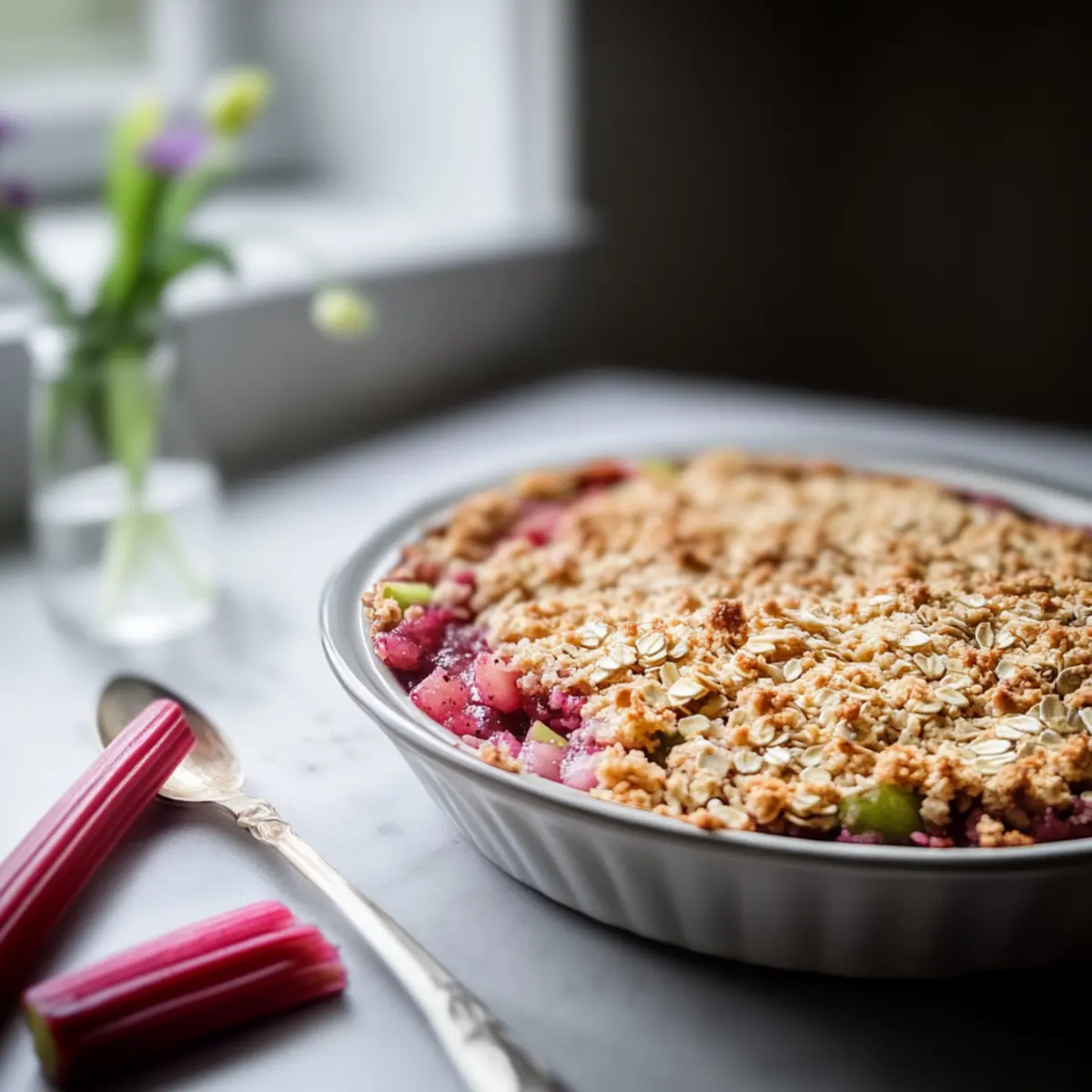 Get ready to whip up this delicious Rhubarb Crumble with Oats, and savor every bite!
