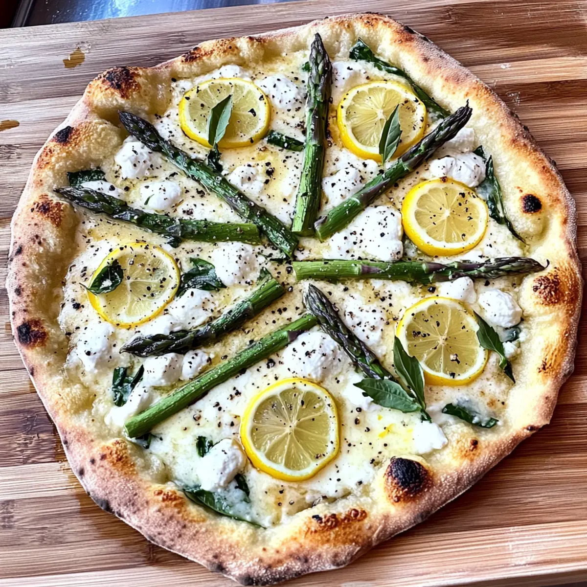 Seasonal Freshness: Packed with bright asparagus and zesty lemon, this pizza celebrates spring’s vibrant flavors while keeping it vegetarian-friendly.