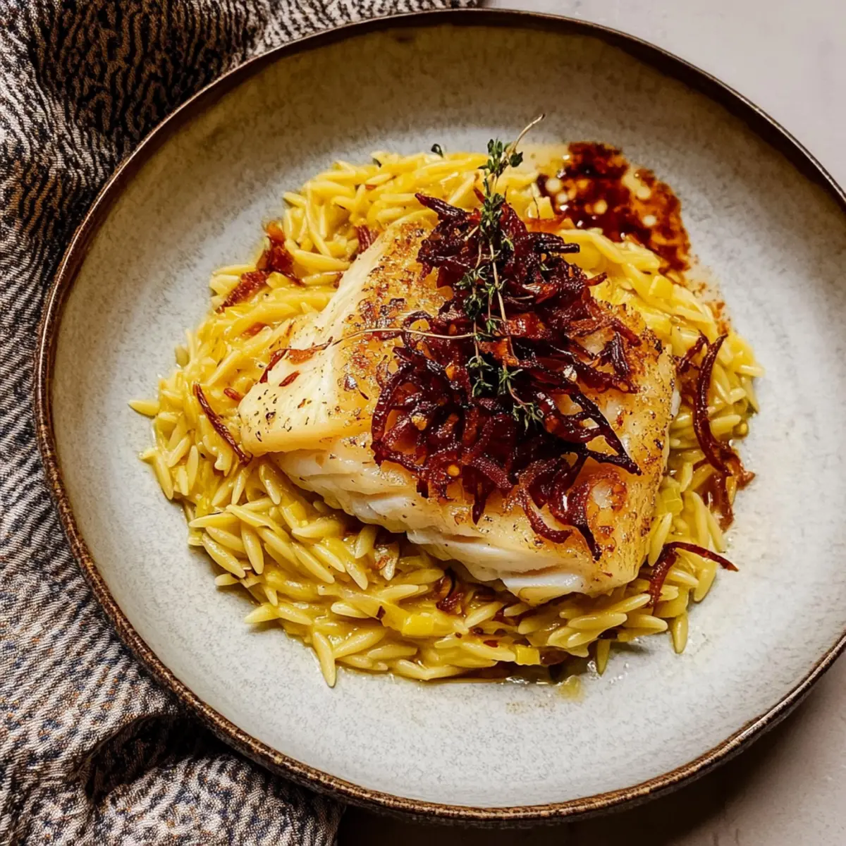 As I stood in my kitchen, the rich aroma of saffron wafted around me, instantly transporting me to a sun-drenched Mediterranean coast. Today, I’m excited to share my elegant Saffron Cod and Orzo recipe—a dish that brings a taste of adventure to your dining room. Perfect for those busy weeknights when you crave something special but still need a quick prep, this meal features tender, flaky cod nestled on a bed of creamy orzo, all topped with crispy frizzled leeks. Not only does it look stunning on the plate, but it also lets you impress your friends and family without spending a fortune. Ready to dive into a seafood experience that’s both delightful and affordable? Let’s get started!