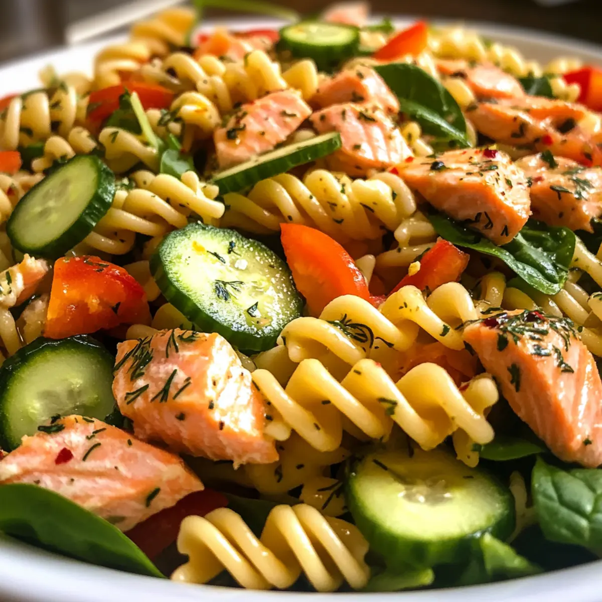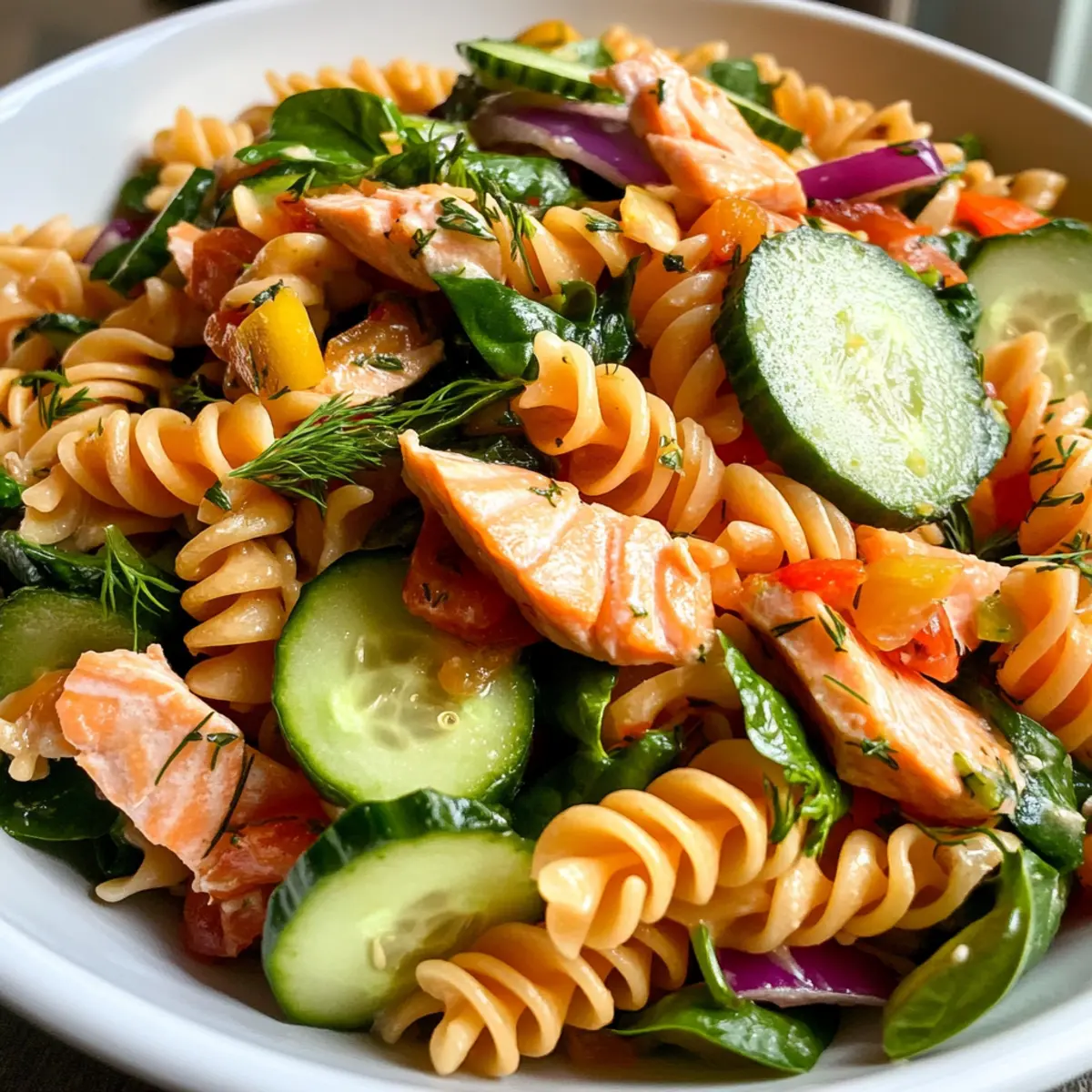 Warm Salad Option: For a unique twist, serve this salad warm by combining cooked salmon, pasta, and dressing while everything is still hot. It transforms the experience into a cozy comfort dish!