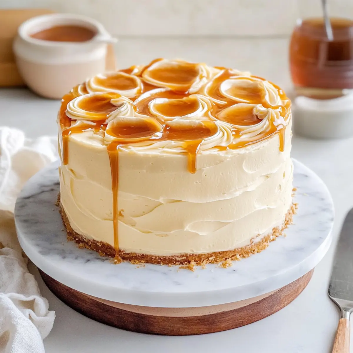 - Assemble Cake: Once cake layers are cooled, place one layer on a serving plate. Spread with caramel buttercream and drizzle with salted caramel sauce. Repeat with second layer and top with final layer. Apply a thin crumb coat over the entire cake and refrigerate for 30 minutes.