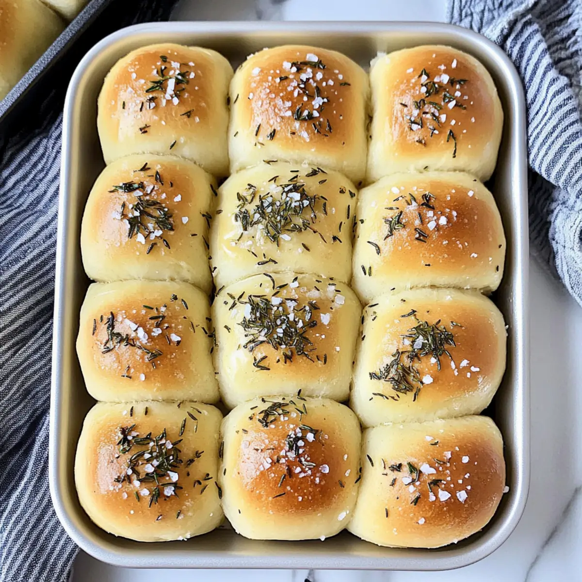 These Sea Salt Rosemary Rolls are perfect for busy individuals looking to save time while still enjoying homemade goodness! You can prepare the dough up to 24 hours in advance; simply follow the recipe until the first rise, then cover the bowl tightly with plastic wrap and refrigerate. When you’re ready to bake, take the dough out, let it come to room temperature for about 30 minutes, shape it into rolls, and allow for the second rise. For even more convenience, you can freeze the shaped rolls after the second rise and bake them directly from the freezer, simply adding a few extra minutes to the baking time. This way, you’ll have warm, fluffy Sea Salt Rosemary Rolls just as delicious as fresh-baked comfort on even the busiest nights!