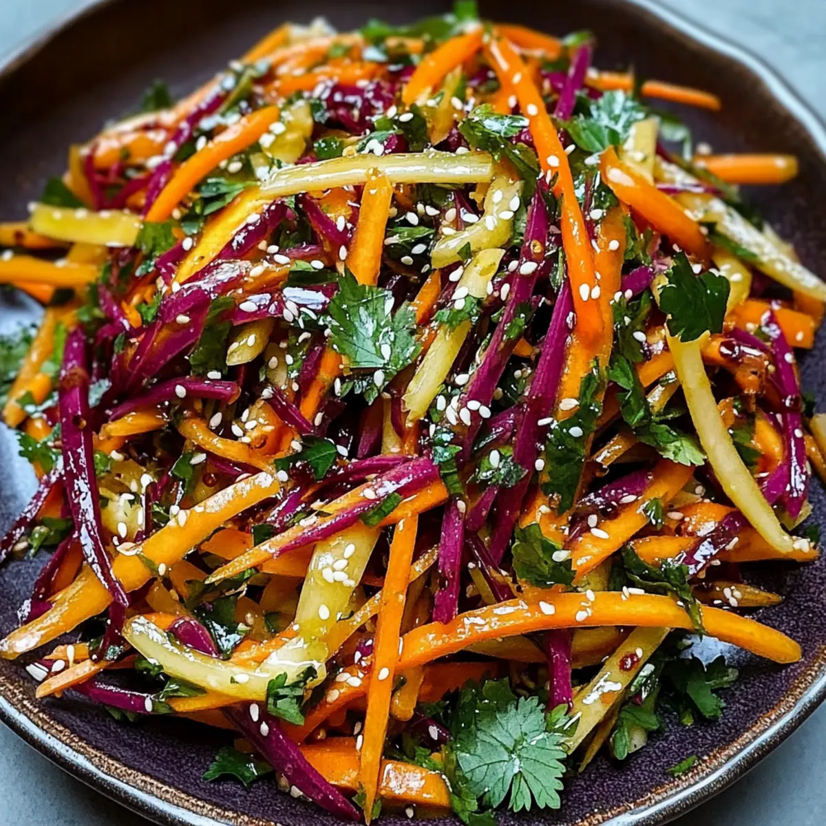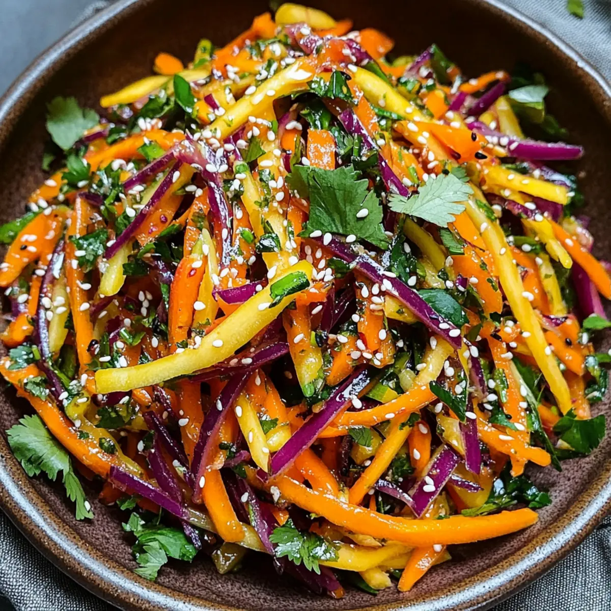 As I stood in my kitchen, the vibrant colors of the rainbow carrots seemed to dance under the sunlight. These beautiful veggies quickly transformed into a Shaved Rainbow Carrot Sesame Salad—an enticing dish that not only catches the eye but also packs a nutritious punch. In just 20 minutes, you can whip up this refreshing, vegan, and gluten-free delight, making it the perfect choice for busy weeknights or leisurely weekend lunches. With its crunchy texture and zesty sesame dressing, this salad is a guaranteed hit on any table, whether served alongside protein-rich grilled chicken or tofu, or enjoyed as a delightful snack. What’s not to love about a dish that’s as versatile as it is colorful? Are you ready to bring a splash of sunshine to your next meal?