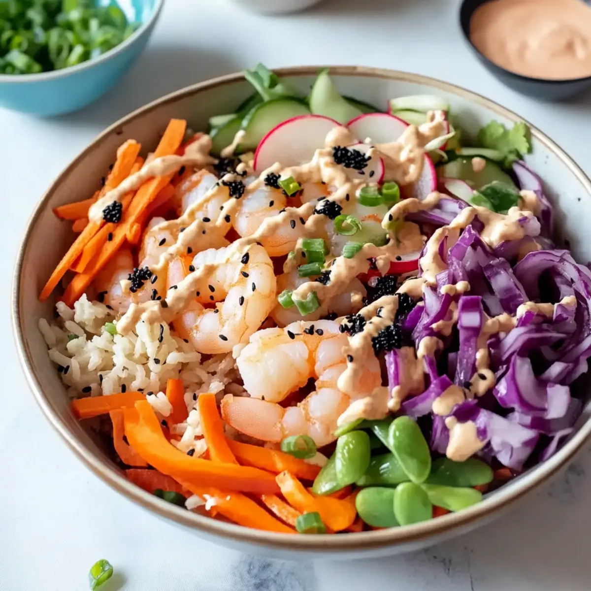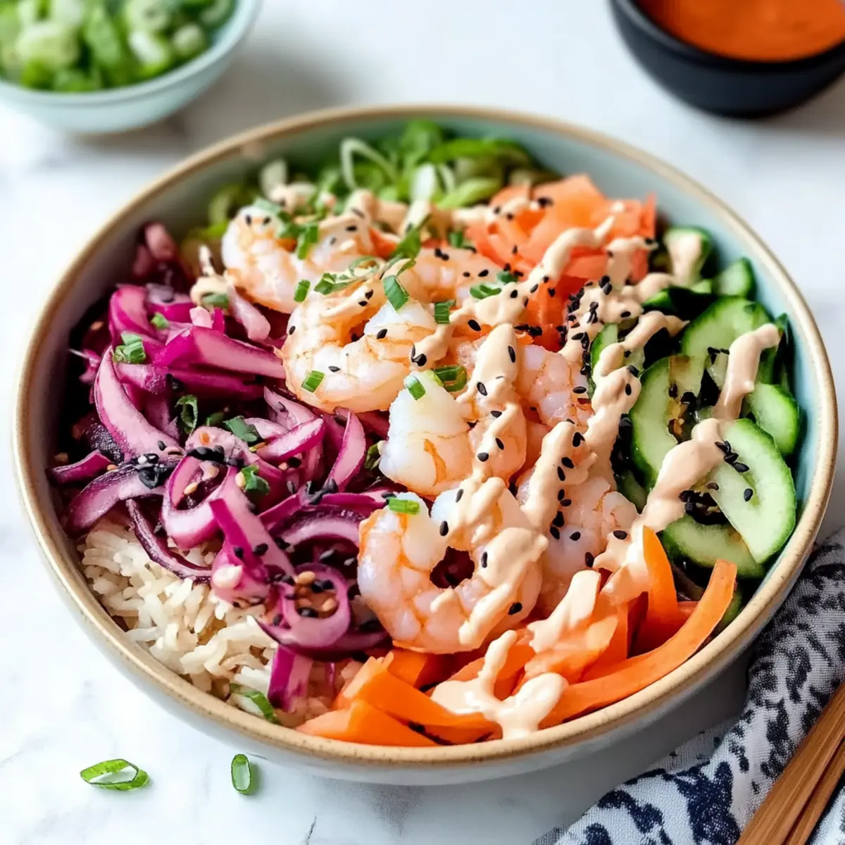 Vibrant Flavors: This bowl bursts with fresh flavors from tender shrimp and a mix of crunchy veggies, creating a meal that excites the palate.