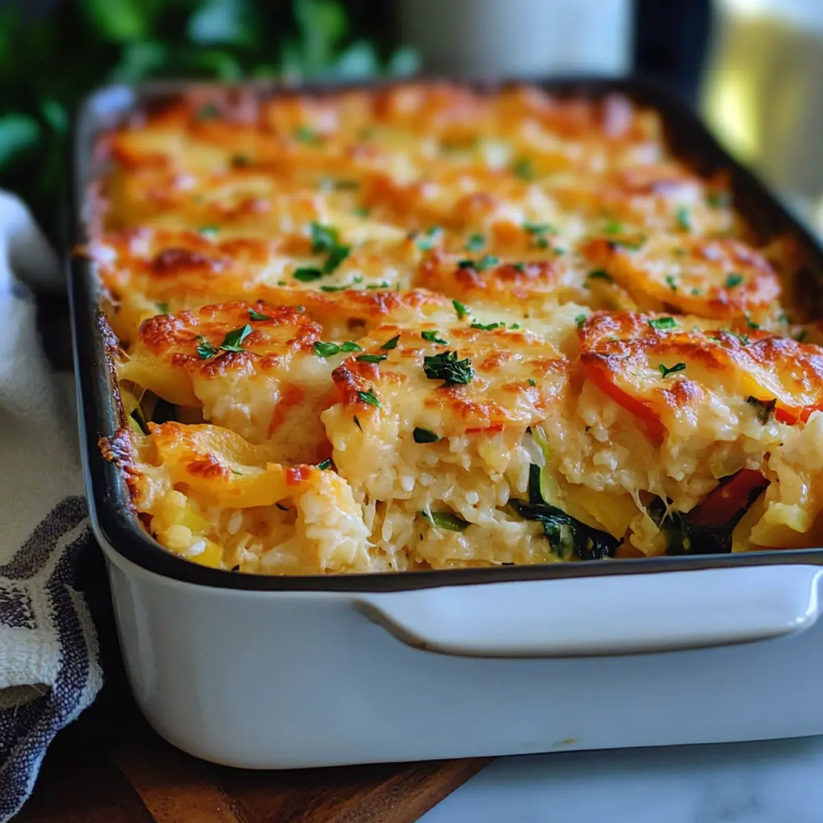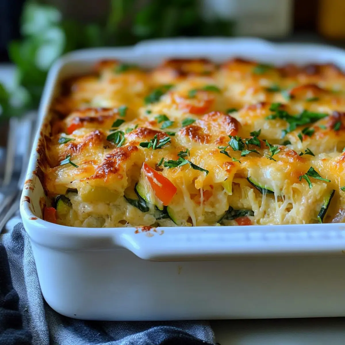 Comforting, Familiar Flavors: This dish brings a fresh take on classic casseroles, making each bite feel like a warm hug. Nutritious Ingredients: Packed with colorful vegetables like zucchini and spinach, it supports your healthy lifestyle while satisfying your taste buds. Simple Preparation: Whip it up in no time, making it perfect for busy weeknights. Customizable Options: Feel free to experiment with different veggies or cheeses, or consider adding a side of Onion Butter Rice for an elevated meal. Low-Carb Delight: Enjoy the hearty texture and flavor without the carbs, making it suitable for various diets. Embrace cozy dinners packed with nutrition and comfort!