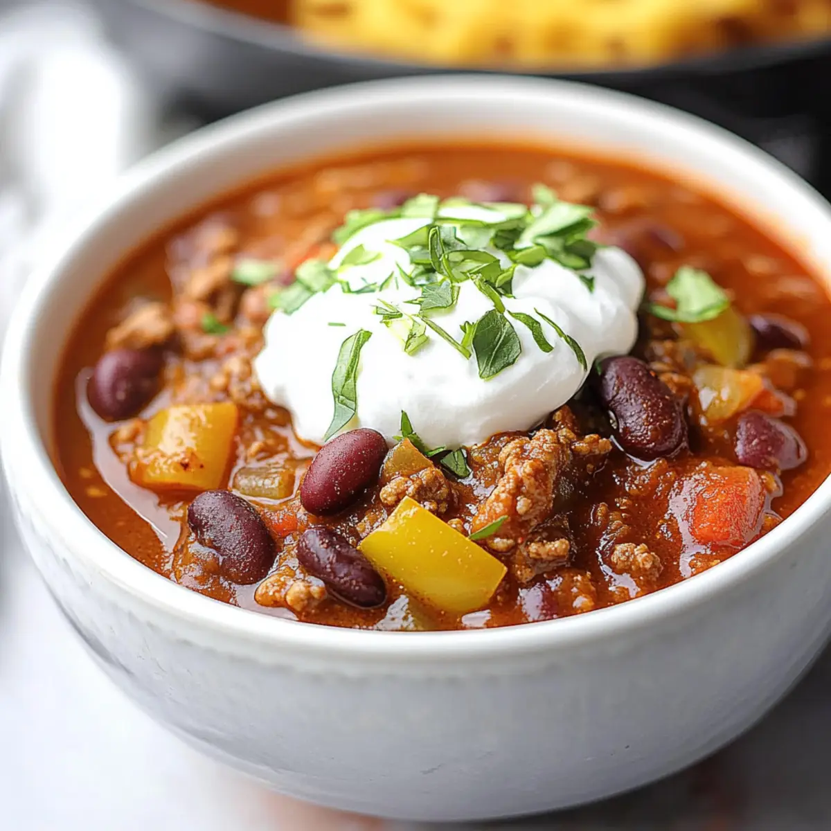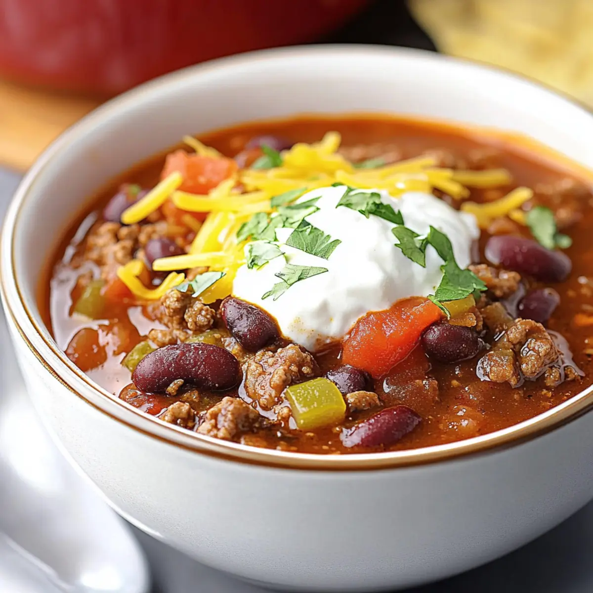 Shredded Cheese and Sour Cream: Topping your chili with creamy cheese and dollops of sour cream adds texture and richness, making each bowl indulgent and satisfying.