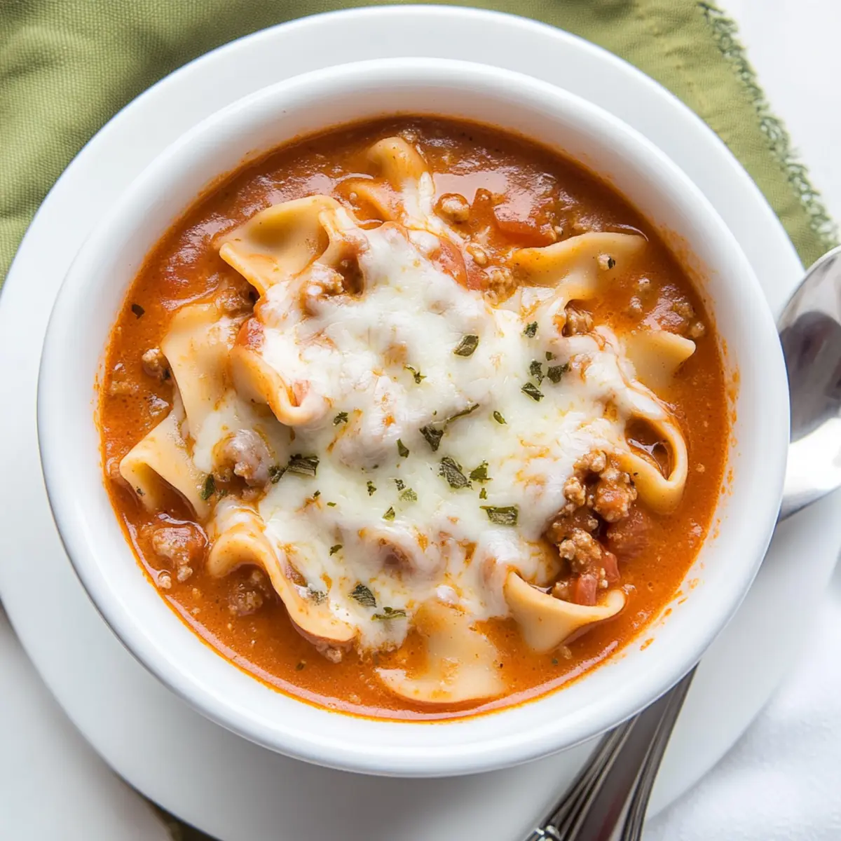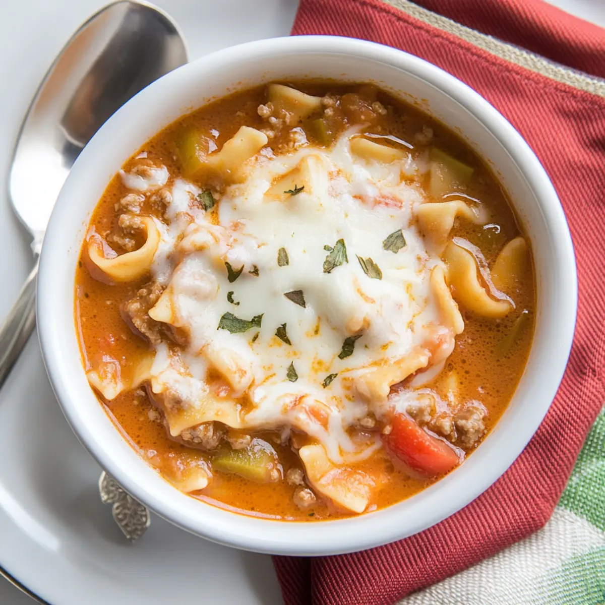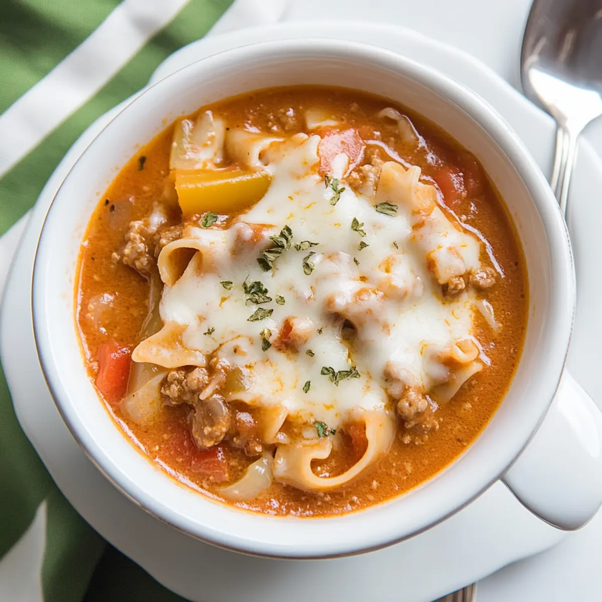 Once your soup has simmered to perfection, it’s time to add richness. Pour in ½ cup of heavy cream and ¾ cup of Parmesan cheese, stirring until fully blended. Allow this creamy mixture to heat through for about 10 minutes, transforming the soup into a luscious, comforting dish that’s reminiscent of traditional lasagna.