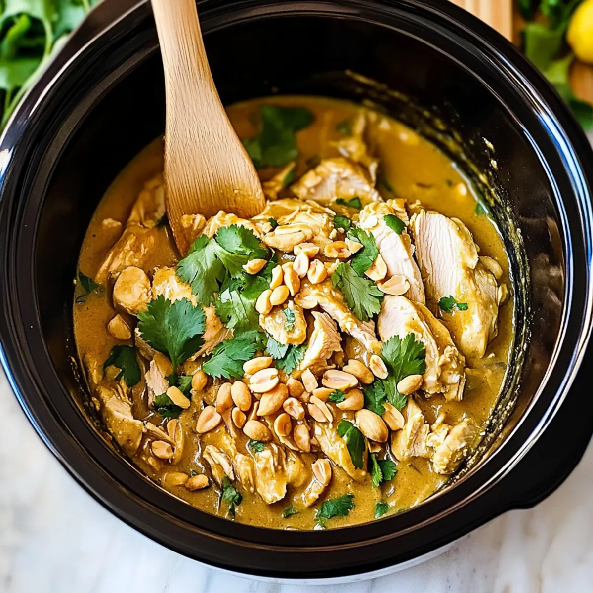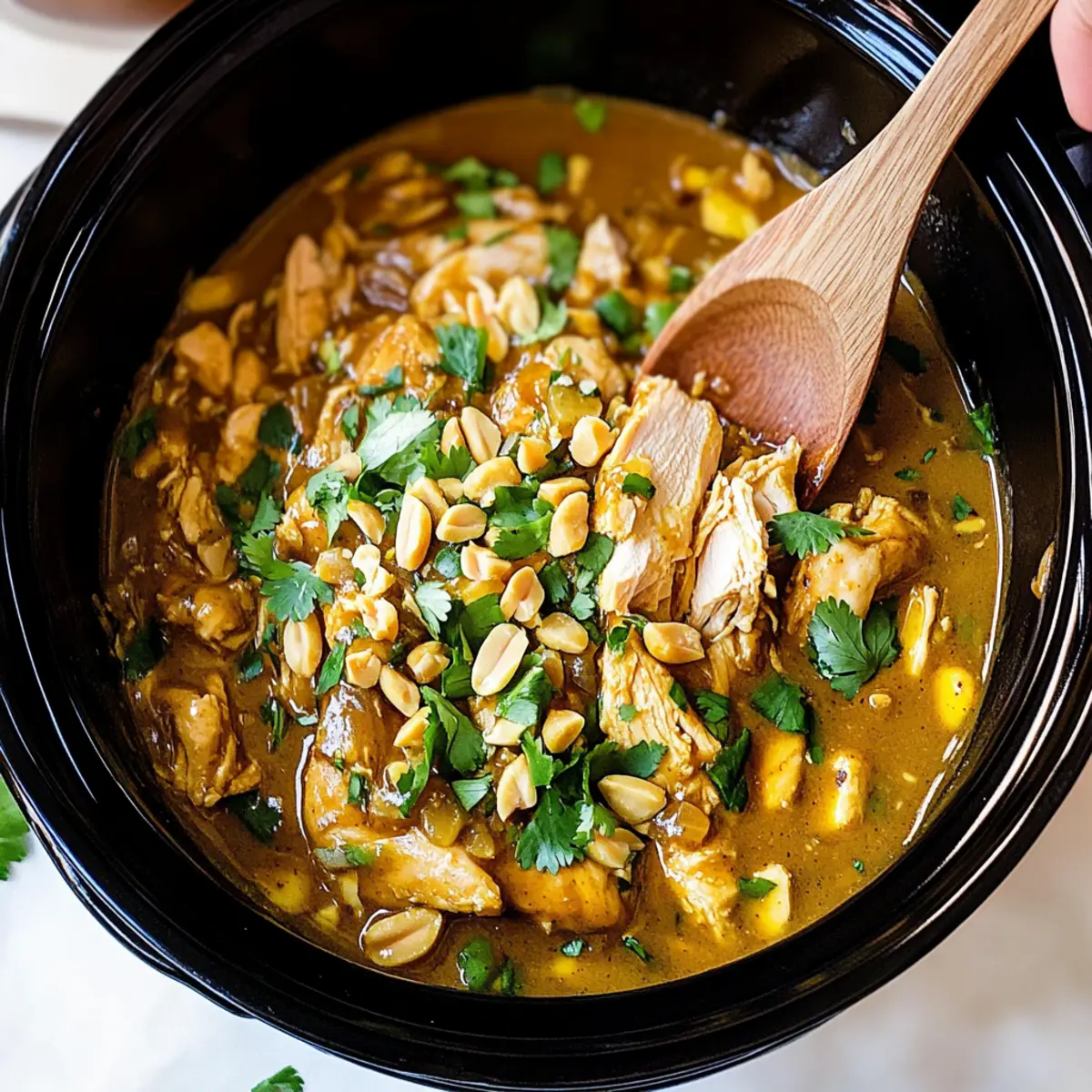 Ease of Preparation: Just toss all ingredients into your slow cooker and let it do the work! Perfect for Busy Nights: This meal is great for those weeknights when you need a nutritious dinner without the hassle. Deliciously Versatile: Enjoy it over jasmine rice, wrapped in lettuce cups, or even as a filling for tacos. Flavor Explosion: The creamy coconut-peanut sauce delivers a rich combination of sweet, savory, and spicy notes that will have everyone asking for seconds. Plus, try pairing it with fresh herbs or a squeeze of lime for added zest. Don’t forget to check out our other popular recipes like French Chicken Casserole and Malted Peanut Butter Cookies for more meal inspiration!