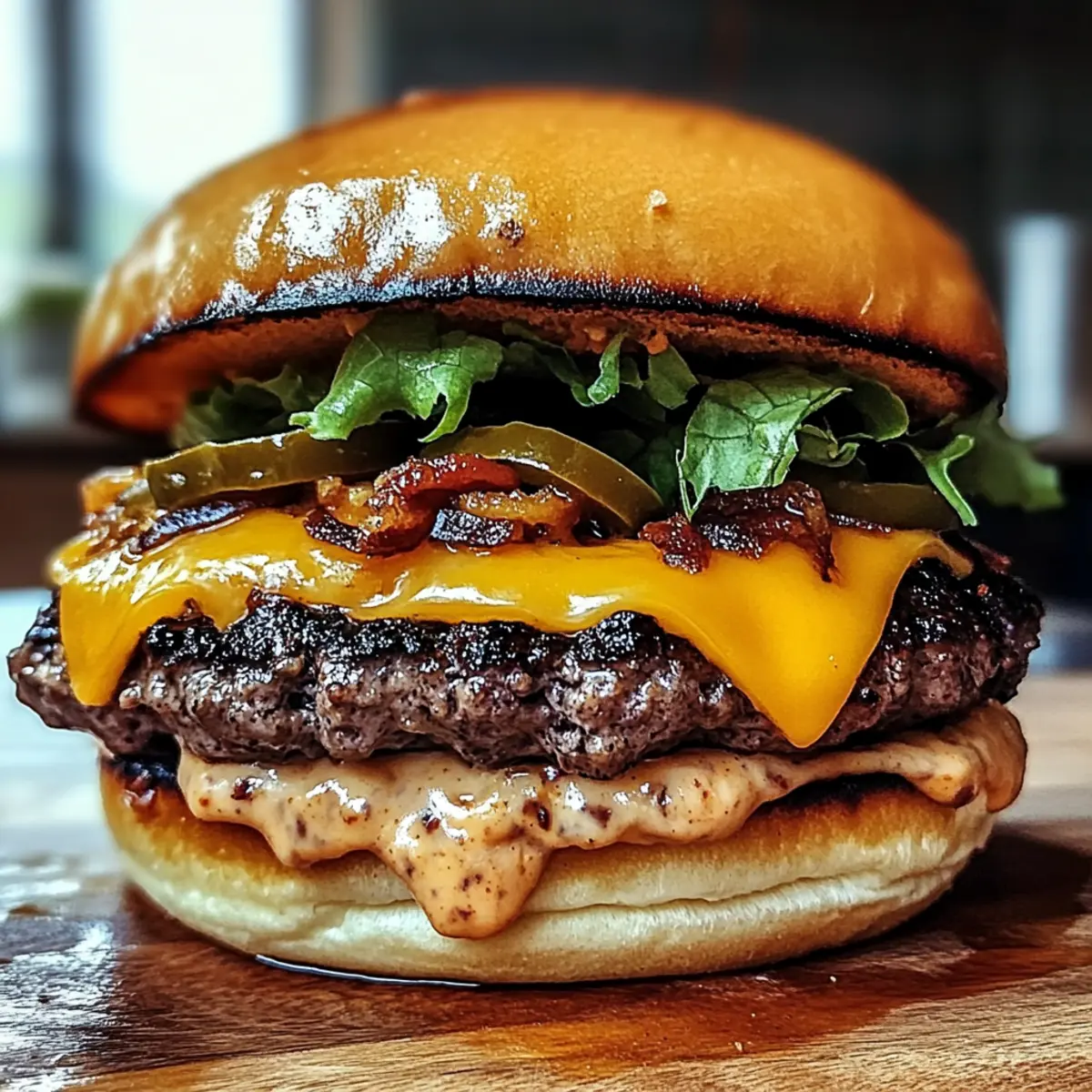 Start by spreading a layer of spicy mayo on the bottom bun to add an extra kick. Stack your cheesy patty right on top and layer with your choice of fresh toppings, like crunchy lettuce, juicy tomatoes, savory pickles, and zesty jalapeños. Finish with the top bun, and you have a mouthwatering Smoked Cajun Cheese Burger ready to devour!