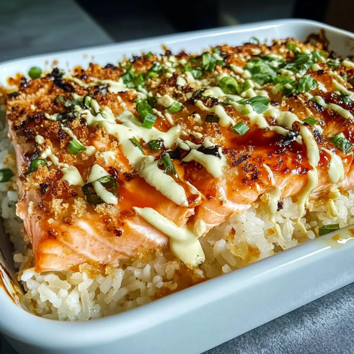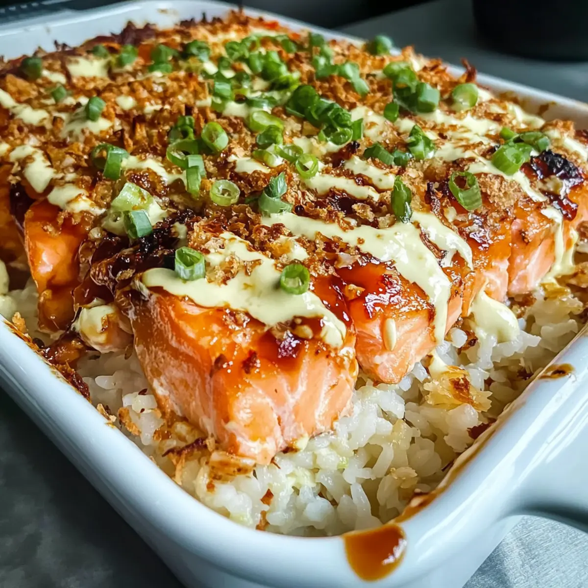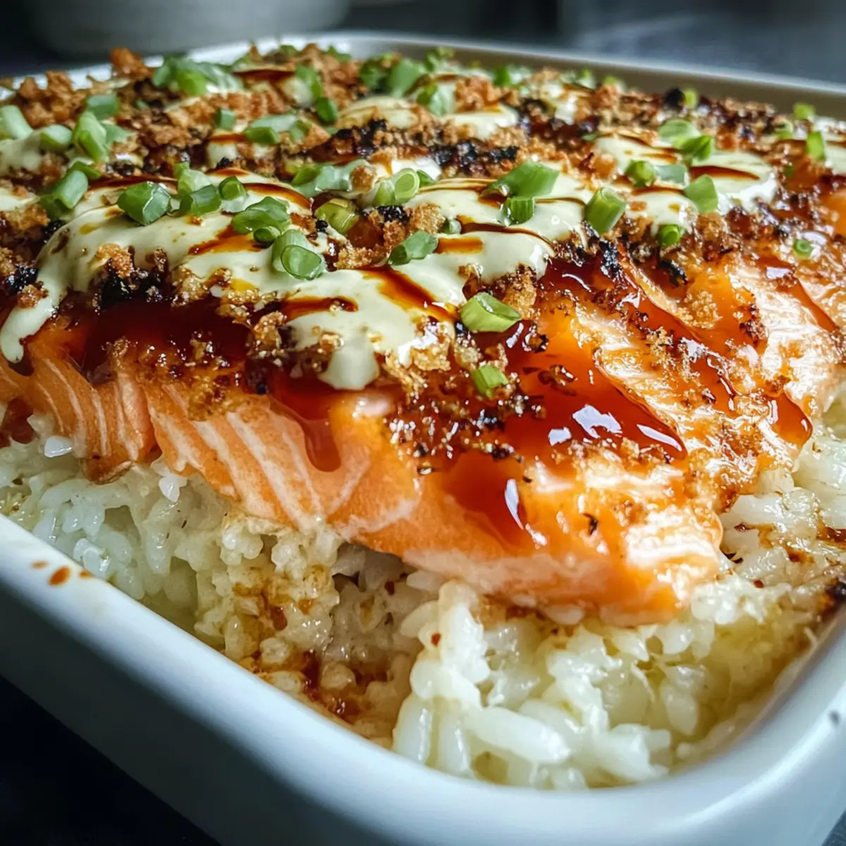 Comforting Flavors: Expect a delicious blend of creamy salmon and fluffy rice, giving you all the sushi flavors you crave but in a cozy casserole form.
