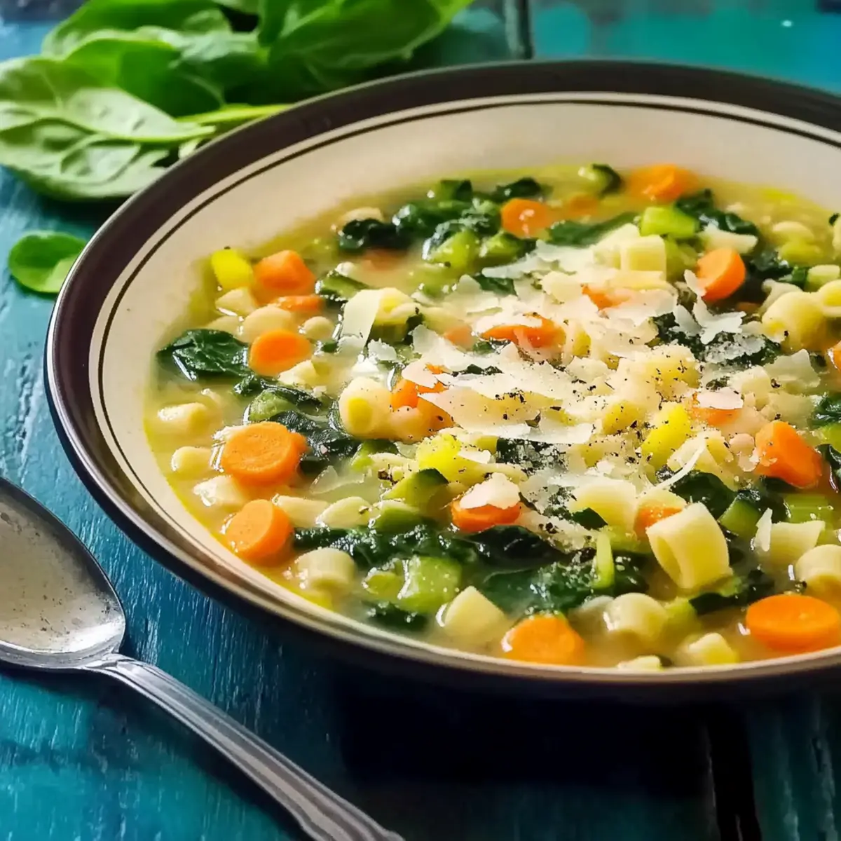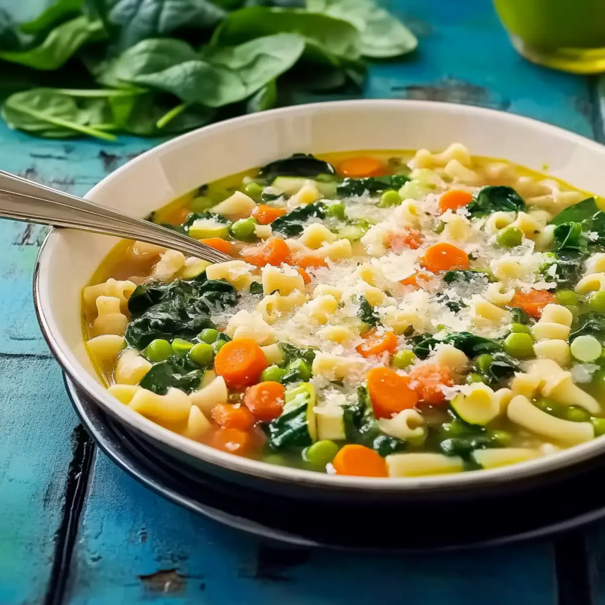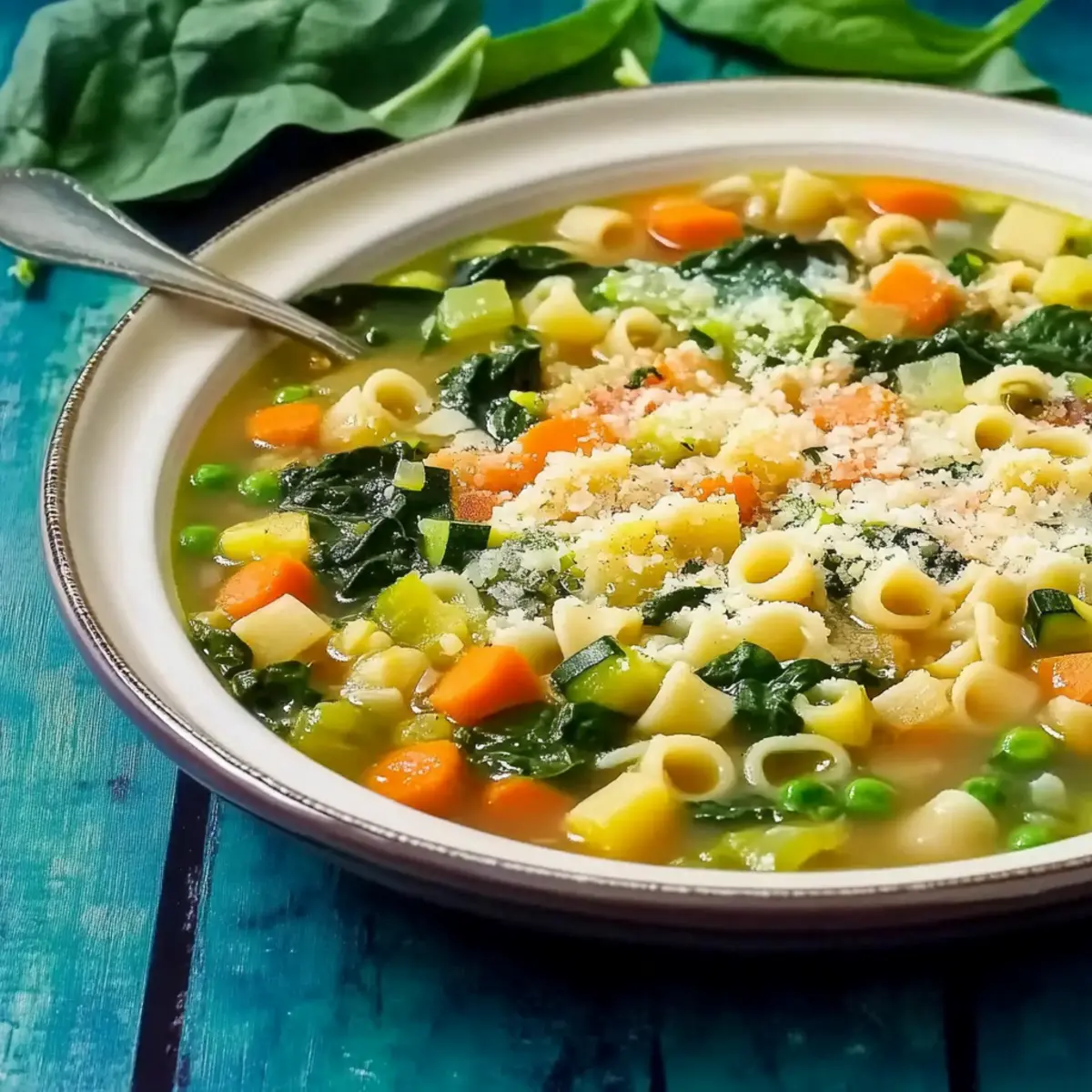 - Ladle the piping hot Spring Minestrone into bowls. For an optional finishing touch, sprinkle freshly grated Parmesan cheese on top, or leave it out for a vegan version.