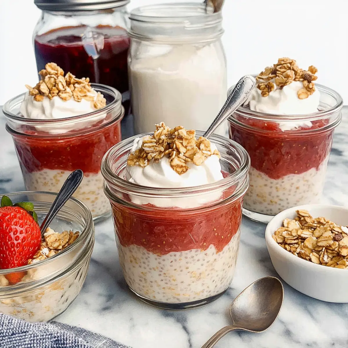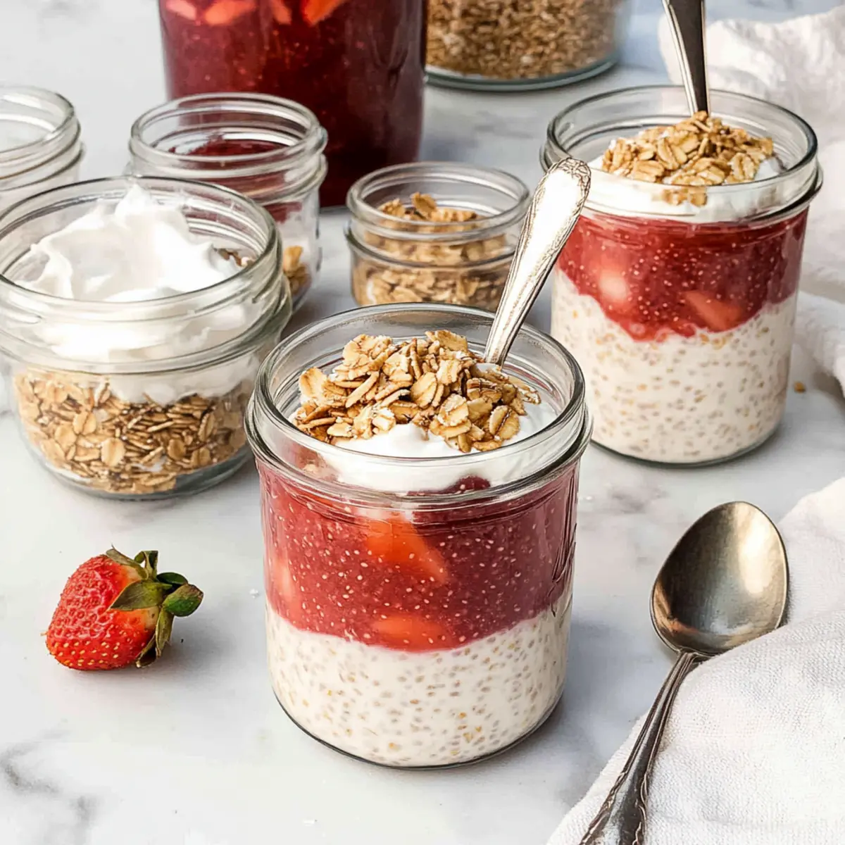 Perfect Layers: When assembling your Strawberry Rhubarb Chia Overnight Oat Parfaits, use a spoon to create distinct layers for a visually appealing presentation.