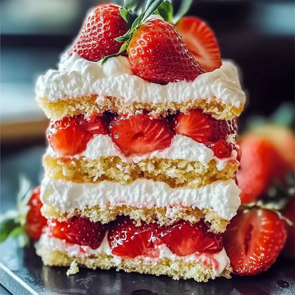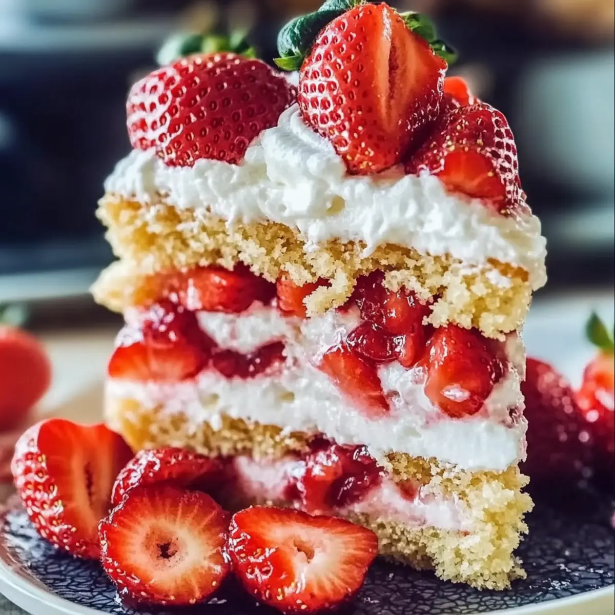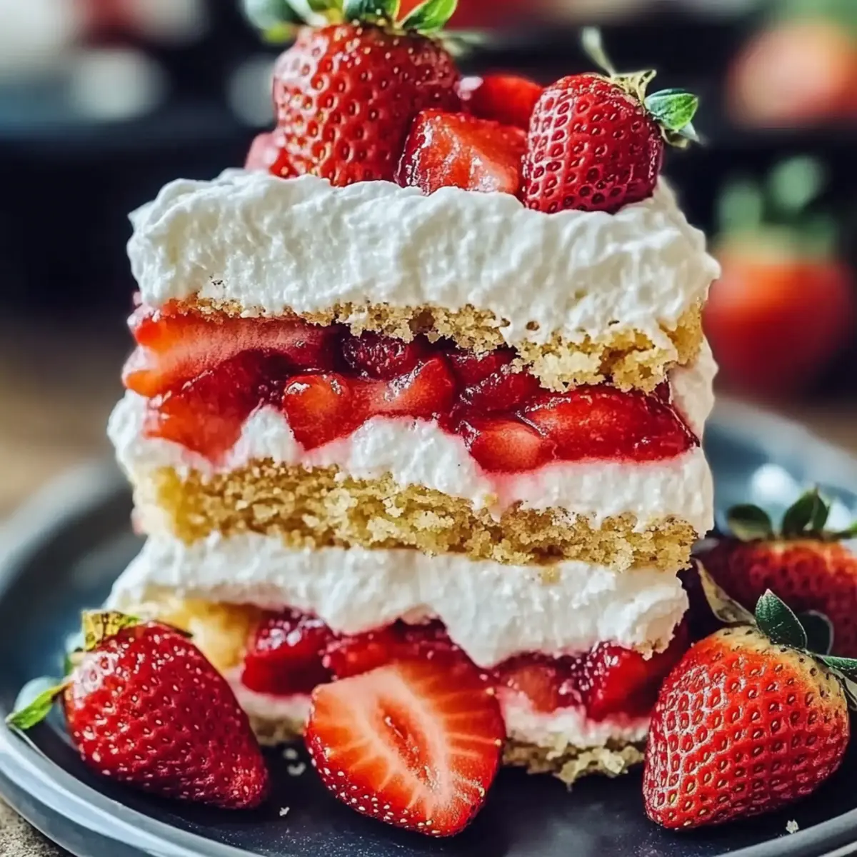 Irresistible summer flavor: This Strawberry Shortcake captures the essence of sunny days with juicy, fresh strawberries basking atop a fluffy, tender cake.