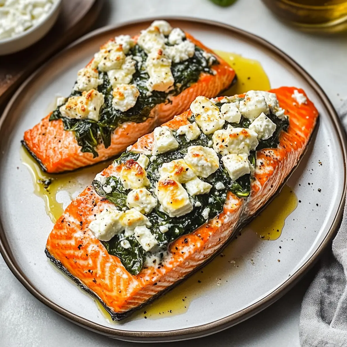As I stood in my kitchen, the aroma of sizzling olive oil mingling with fresh garlic and vibrant greens took me back to sun-drenched shores of the Mediterranean. This Spinach & Feta Stuffed Salmon is my secret weapon for those evenings when I crave something impressive yet quick to whip up. In just 30 minutes, you can transform simple salmon fillets into a gourmet delight that’s not only gluten-free, but also packed with healthy ingredients. Picture the creamy feta combined with savory spinach, nestled inside tender salmon—this dish is bound to impress family and friends alike. Whether you’re looking to shake off the fast-food blues or elevate your weeknight dinner routine, this recipe offers a delicious, guilt-free option. So, are you ready to bring a taste of the Mediterranean into your home?