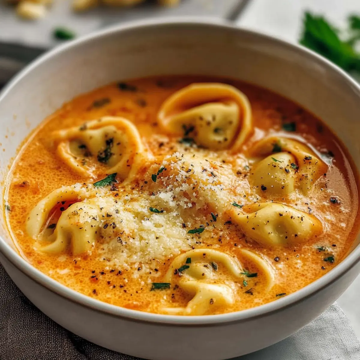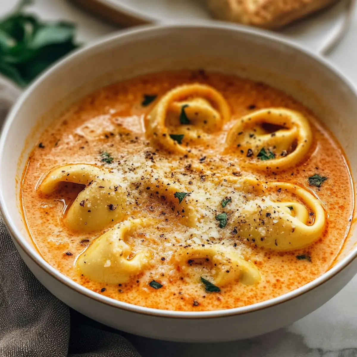 Comforting warmth: This creamy Tomato Tortellini Soup wraps you in a cozy embrace, making it perfect for chilly nights. Quick and easy: In just under 30 minutes, you can serve a delicious meal that even your pickiest eaters will adore! Versatile options: Feel free to swap in different tortellini types or toss in your favorite veggies for added nutrition. Crowd-pleaser: Serve it with crusty bread or garlic breadsticks, and watch as everyone gathers for seconds! Similarly to other comforting recipes like Chicken Mozzarella Tomato or Alfredo Lasagna Soup, this dish brings warmth and joy into your home.