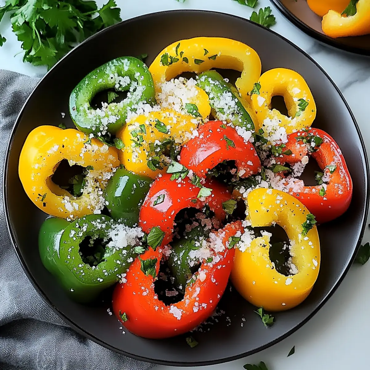 This Tricolor Bell Pepper Salad is perfect for meal prep, allowing you to enjoy its vibrant flavors without the last-minute rush! You can wash, slice, and store the bell peppers in an airtight container up to 3 days in advance, helping you save valuable time during busy weeknights. To maintain their crispness, refrigerate the sliced peppers separately and combine them with the dressing, parsley, and seasonings just before serving. For added convenience, you can also mix the dressing ingredients—olive oil, lemon juice, balsamic vinegar, garlic powder, salt, and pepper—a day ahead. When you’re ready to serve, simply toss everything together for a fresh, colorful salad that’s just as delicious as when it was first made!
