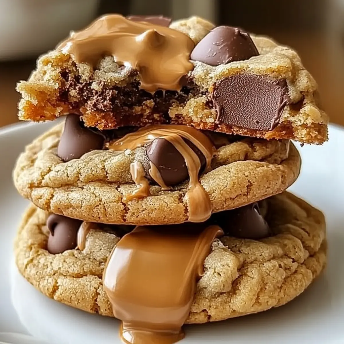 Caramel Sauce Drizzle: A drizzle of warm caramel adds a delightful sweetness and gooeyness, elevating the cookie experience.