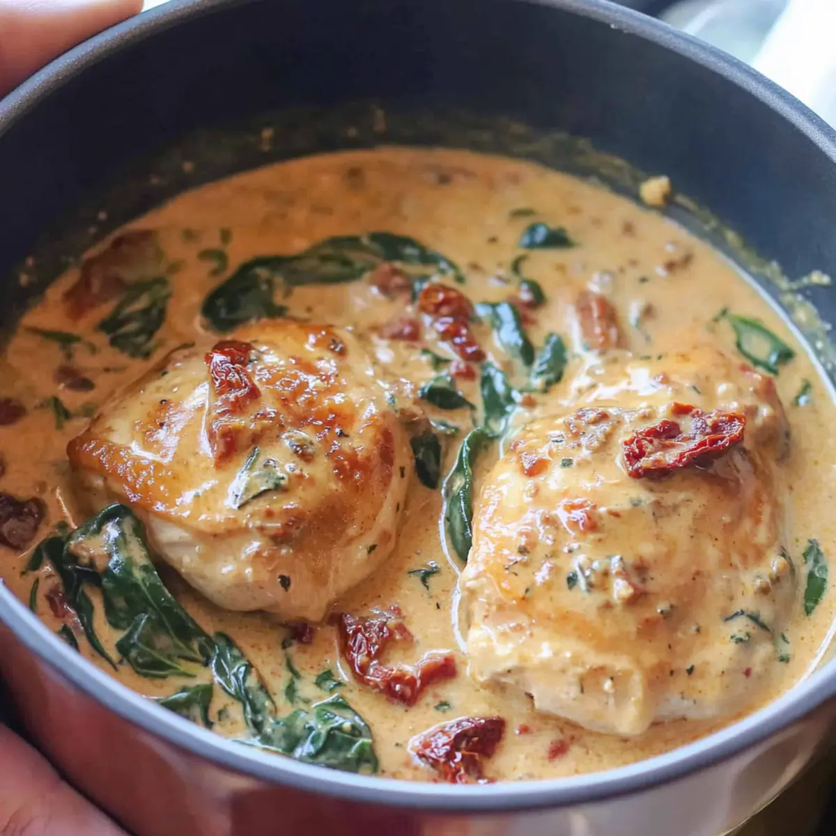 Flavorful and Creamy: The rich combination of sun-dried tomatoes and fresh spinach creates a vibrant sauce that complements the tender chicken beautifully.