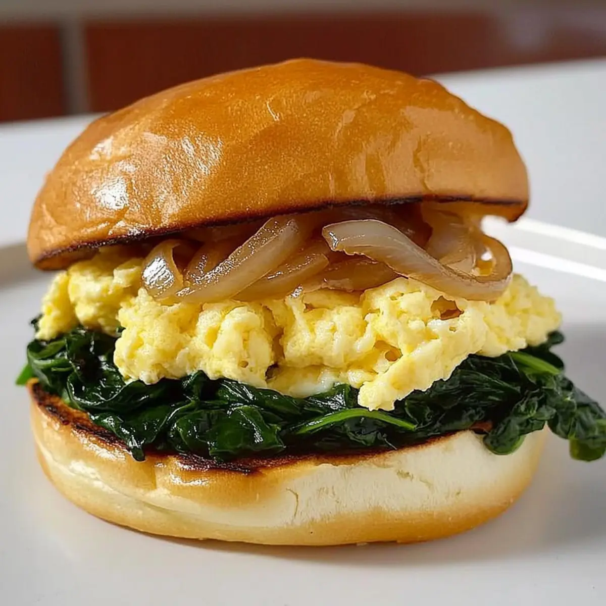 Certainly! If you want to make batches ahead of time, freeze the cooked onion and spinach mixture along with the scrambled eggs in airtight containers. They can be stored in the freezer for up to 1 month. When you’re ready to eat, simply thaw everything in the fridge overnight, then warm it gently in a skillet or microwave before assembling the sandwich.