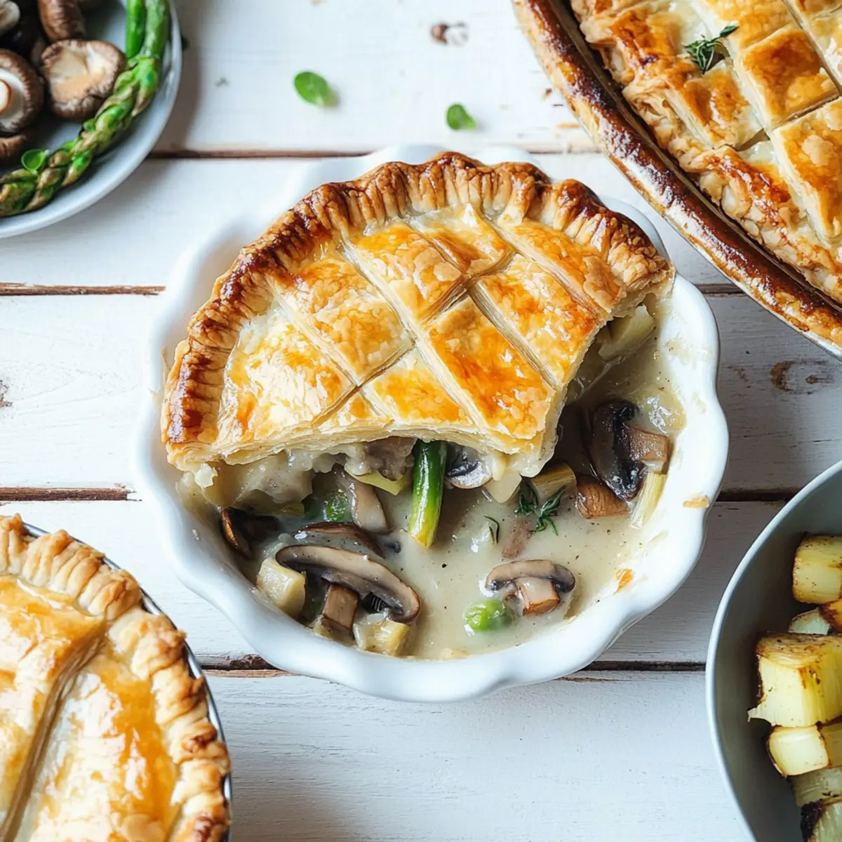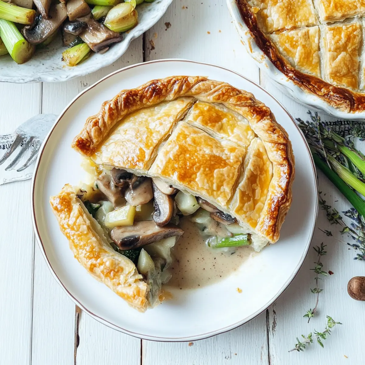 Steamed Asparagus: Lightly steamed asparagus adds a fresh, vibrant crunch that balances the richness of the pie. A sprinkle of lemon juice can brighten up the dish, bringing out the earthiness of the mushrooms.