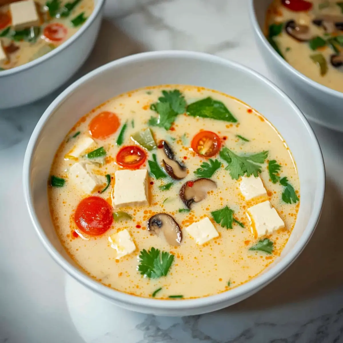 Comforting, there’s nothing quite like a bowl of hot soup to soothe the soul, especially one as heavenly as this creamy vegan tom kha. Aromatic flavors combine effortlessly, bringing a tropical paradise right to your kitchen. Flexible options allow you to customize with optional proteins or a variety of vegetables, making it perfect for everyone at the table. Quick to prepare, this soup comes together in under an hour, allowing you to enjoy delicious home-cooked food without the wait. Nourishing ingredients create a satisfying meal rich in healthy fats and flavorful nutrients, ideal for warming up on chilly nights or when you need a boost. Don’t forget to serve it with a side of jasmine rice or crusty bread for a complete meal!
