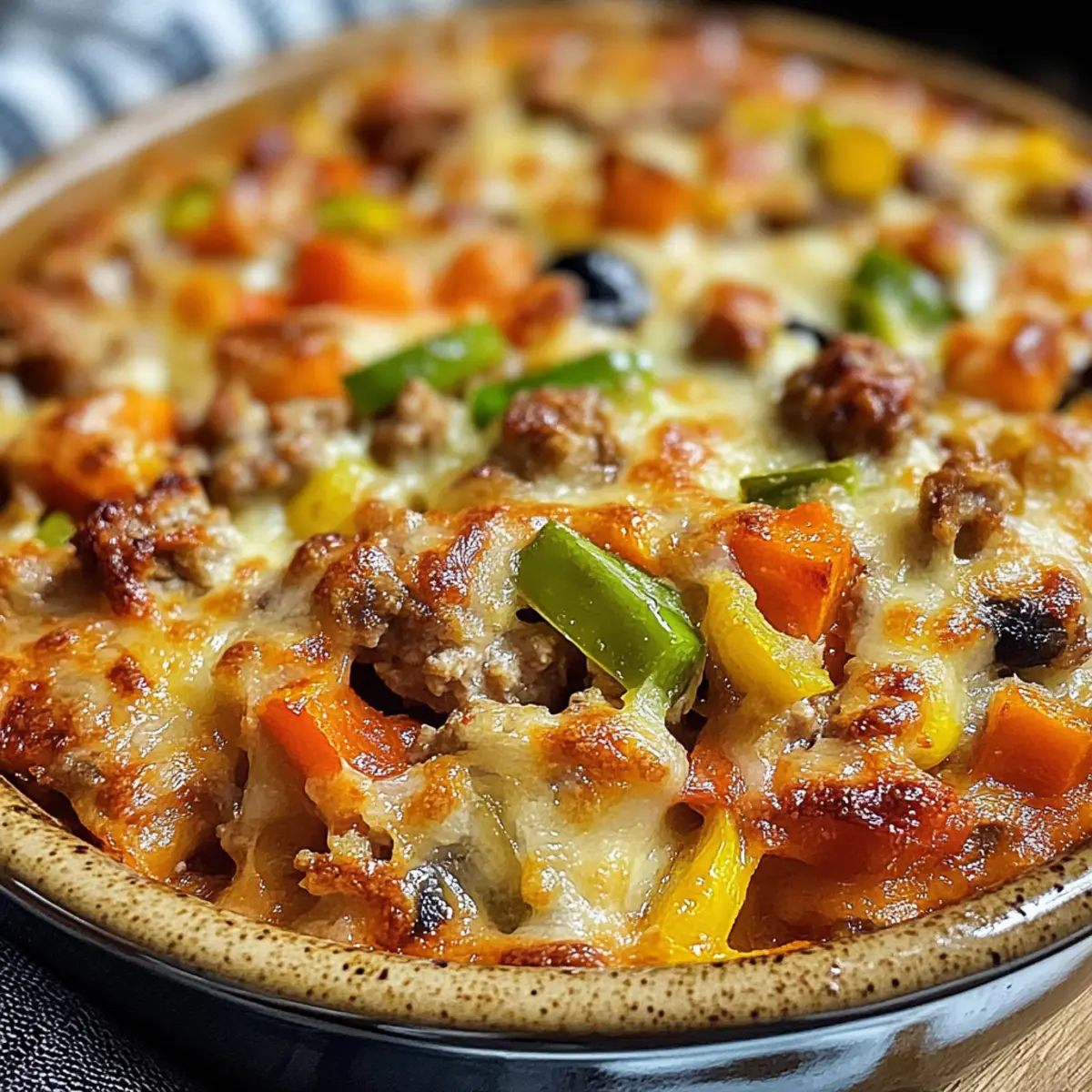 Spread the mixture evenly into your prepared casserole dish. If you’re feeling indulgent, sprinkle breadcrumbs on top for a crispy texture. This step is crucial for achieving that golden crust that contrasts beautifully with the creamy filling of your Low Carb Cottage Cheese Pizza Bowl.
